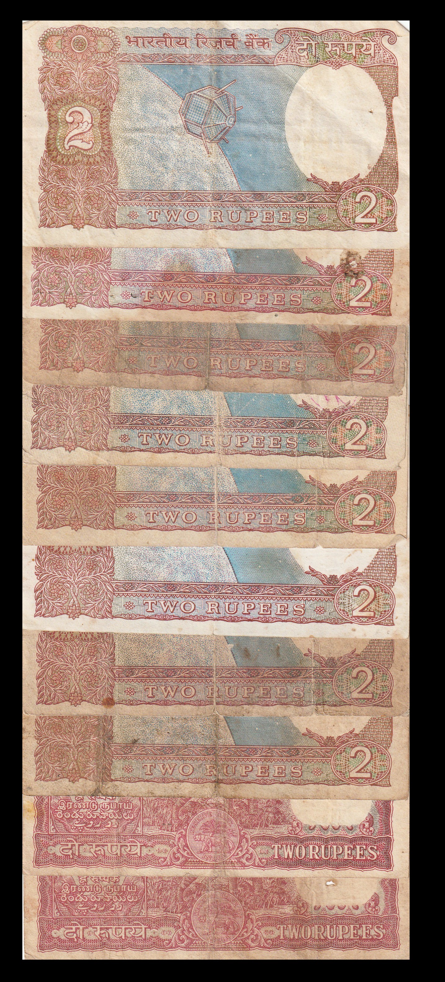 India 2 Rupees Very Used & Damaged Banknote (1)