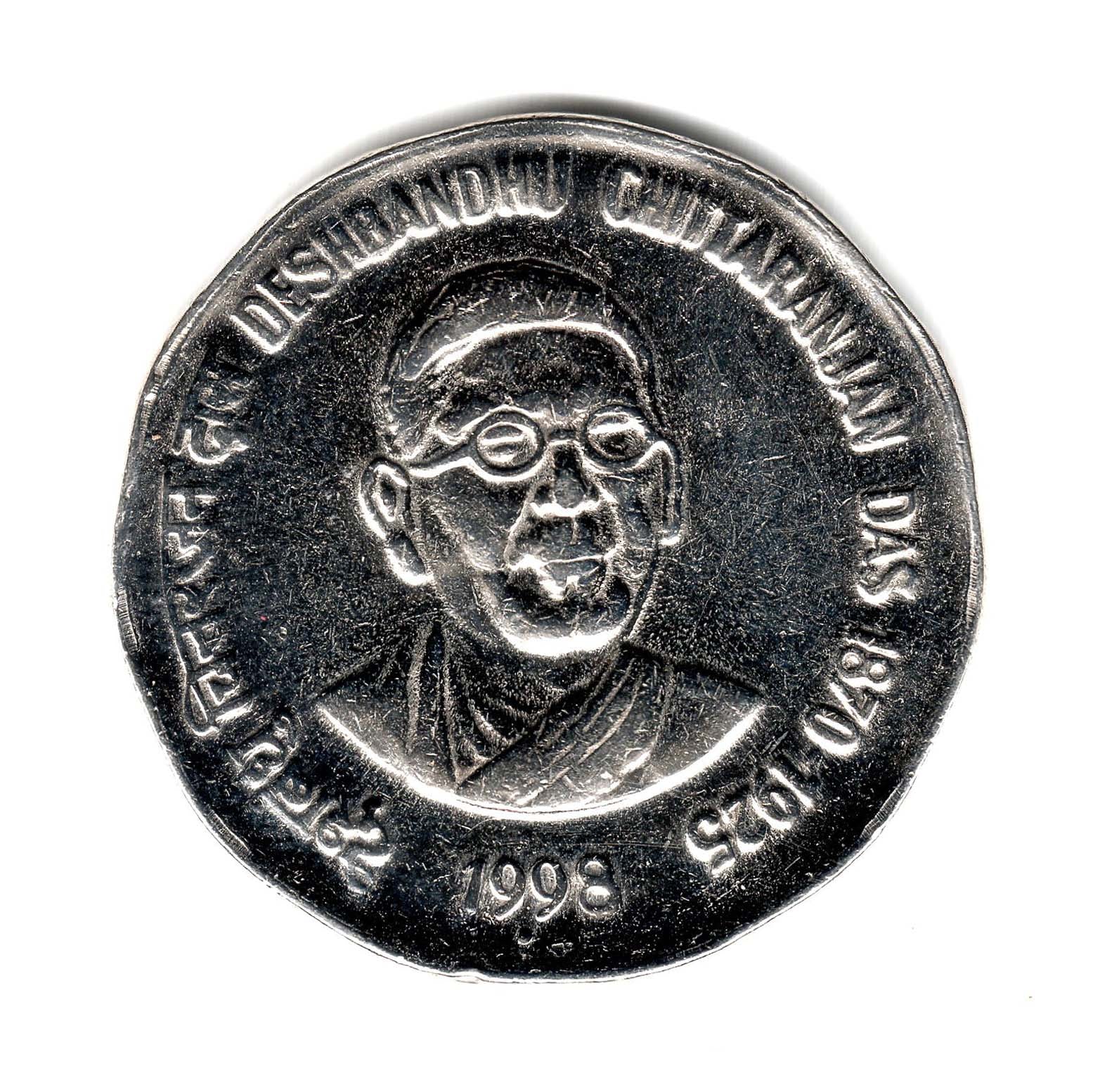 India 2 Rupees Deshbandhu Chittaranjan Das Used Coin (Noida Mint)
