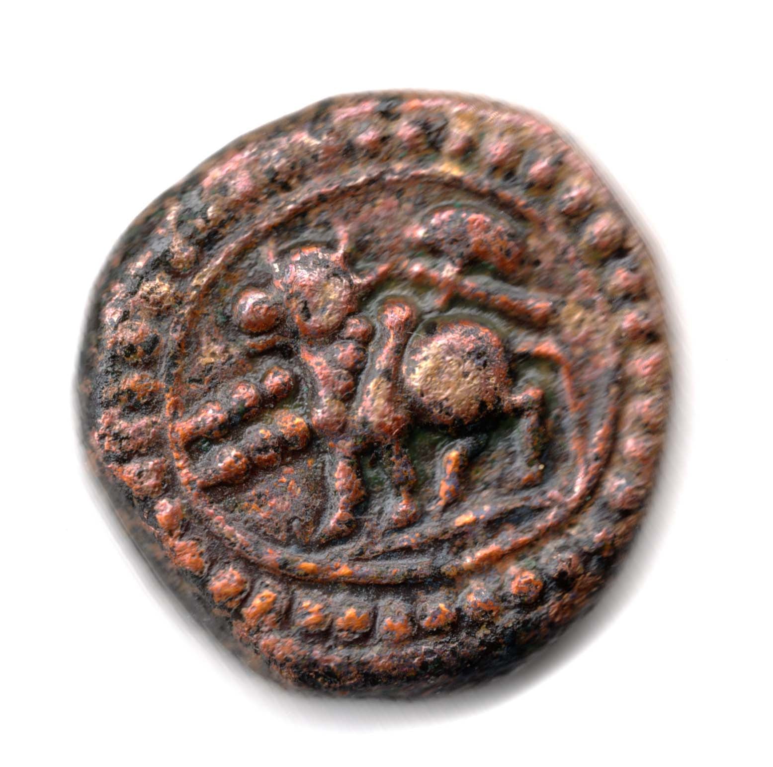 Konerirayan Copper Coin – Bull wearing garland & Tamil Legend with Dagger Rare Type 3.52gm ( KR01 )