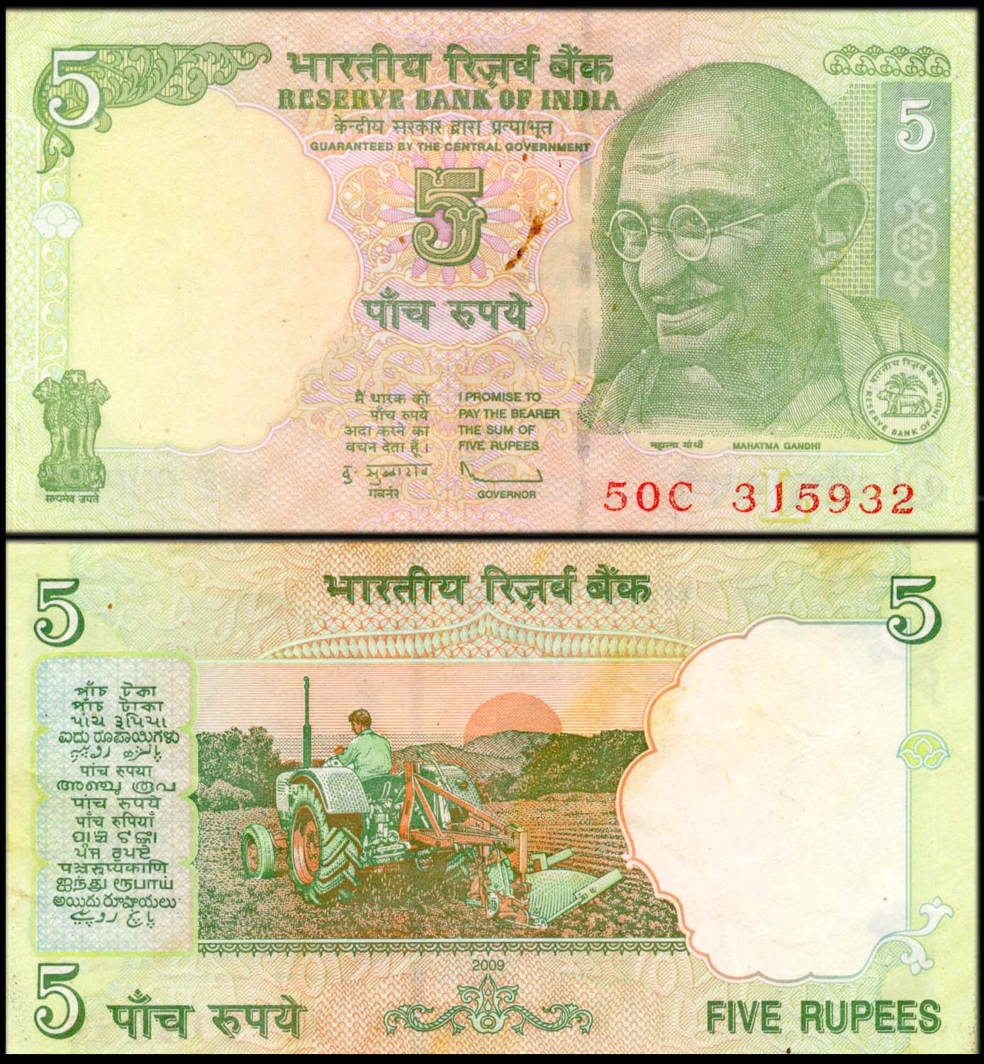 India 5 Rupees Governor D. Subbarao Used Banknote