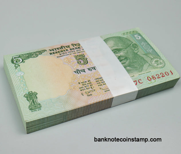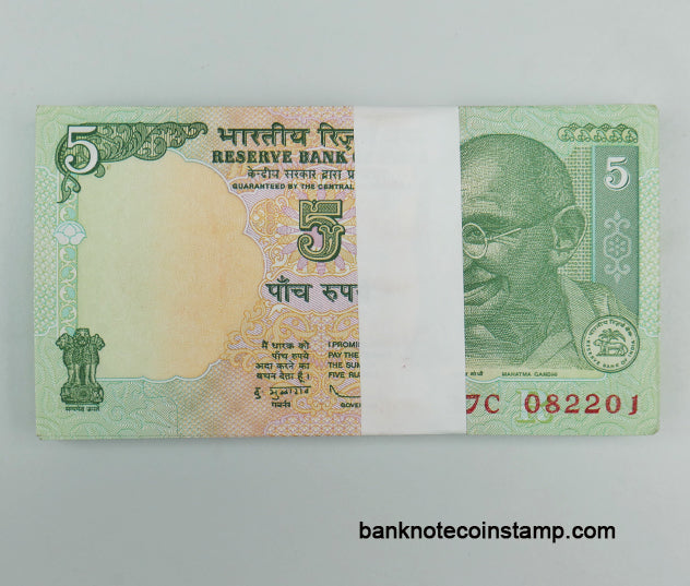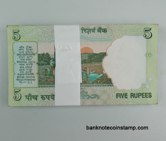 India 5 Rupees Governor D. Subbarao Prefix -C Inset -R Bundle