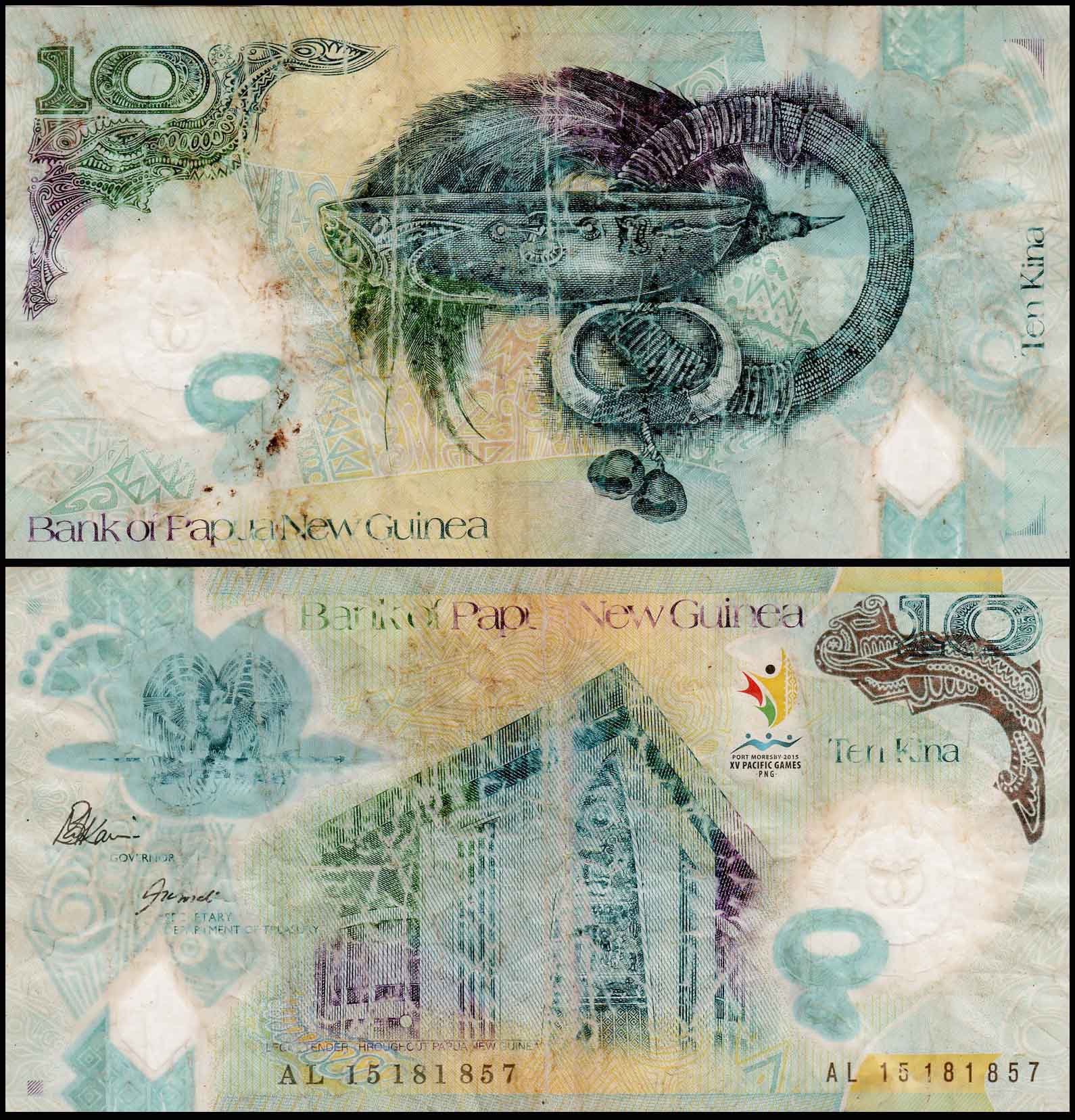 Papua New Guinea 10 Kina Very Used Banknote