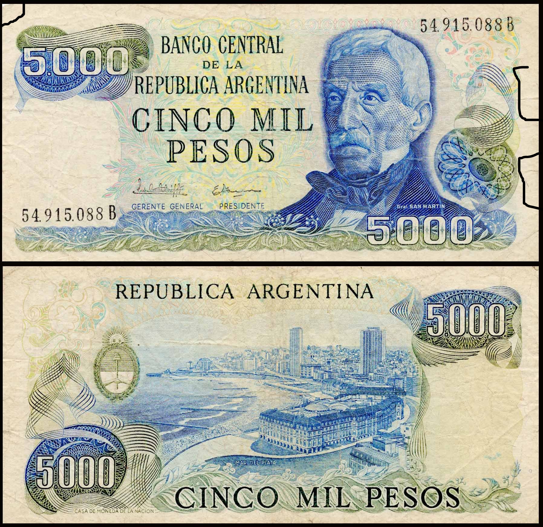 Argentina 5000 Pesos Used & Damaged Banknote M148