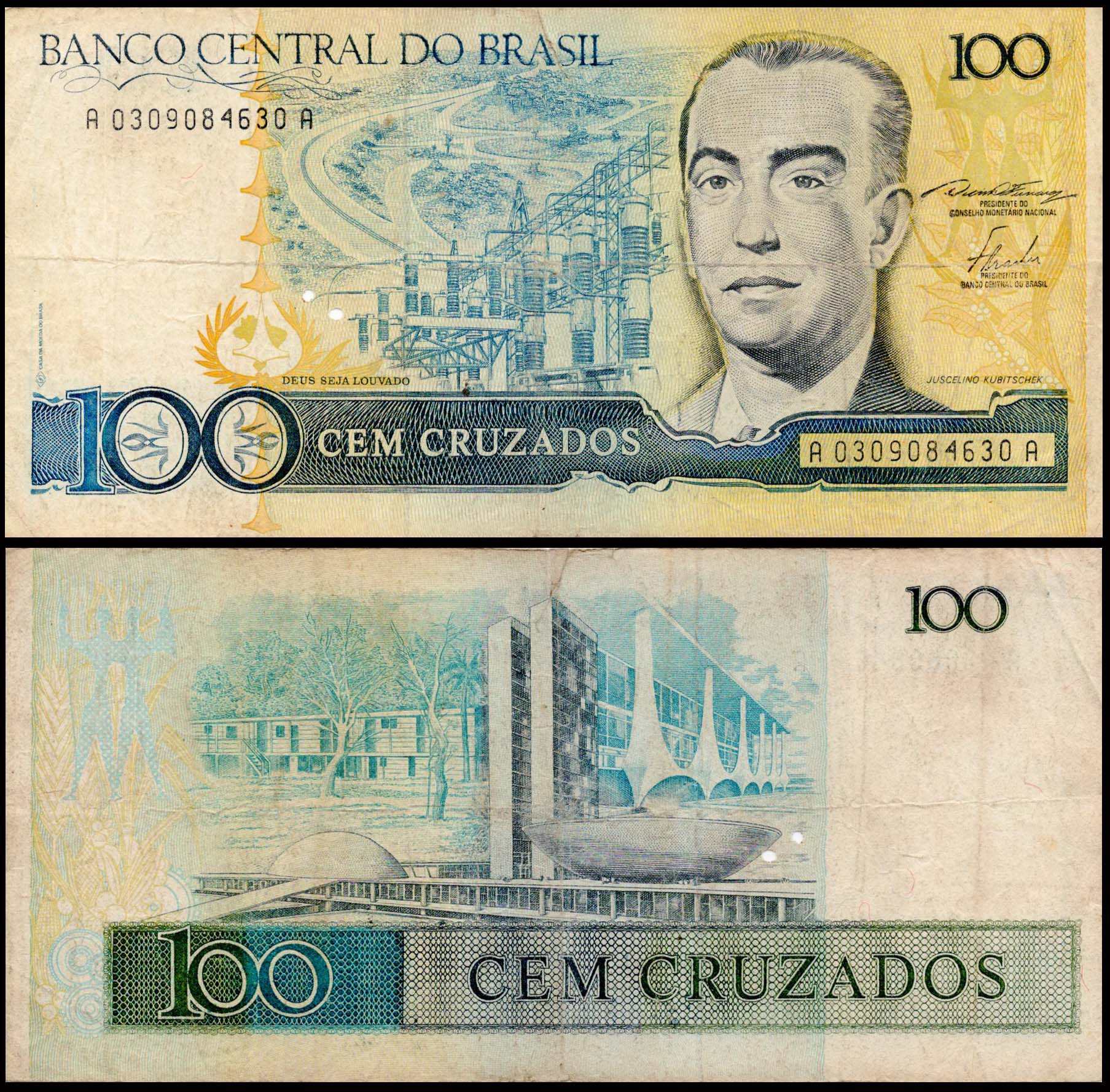 Brazil 100 Cruzados Very Used & Damaged Banknote M148