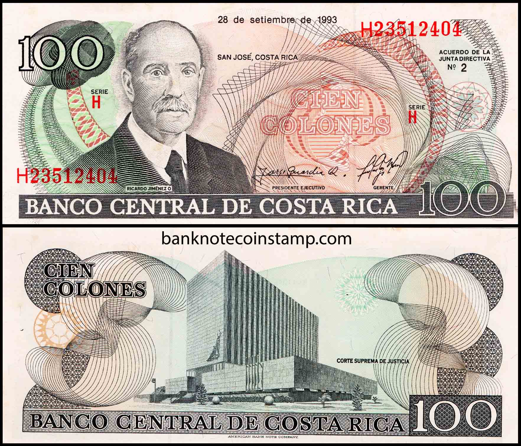Costa Rica 100 Colones Buildings Very Fine Banknote