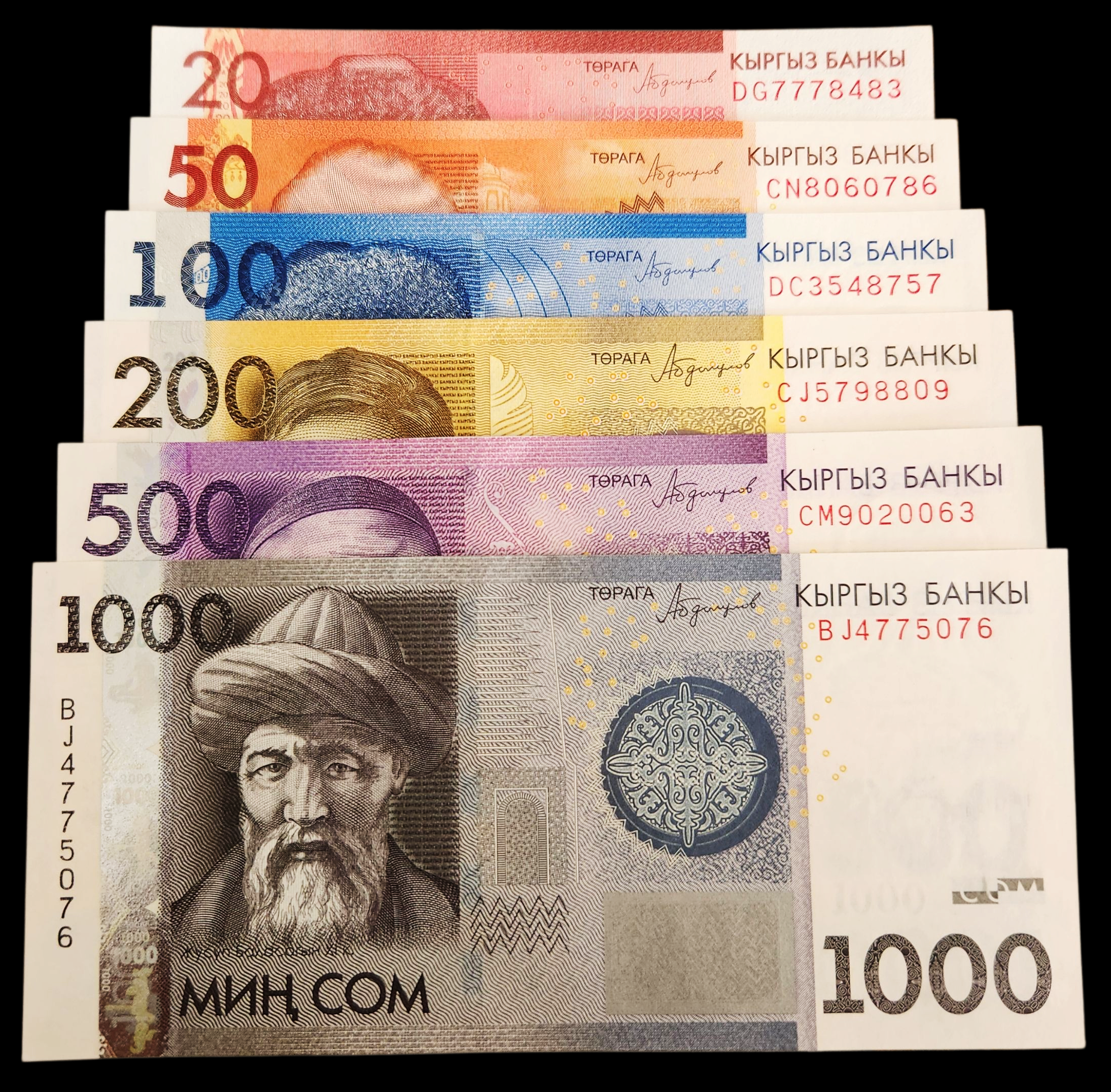 Kyrgyzstan Set Of 20, 50, 100, 200, 500, 1000 Som NEW UNC Banknote