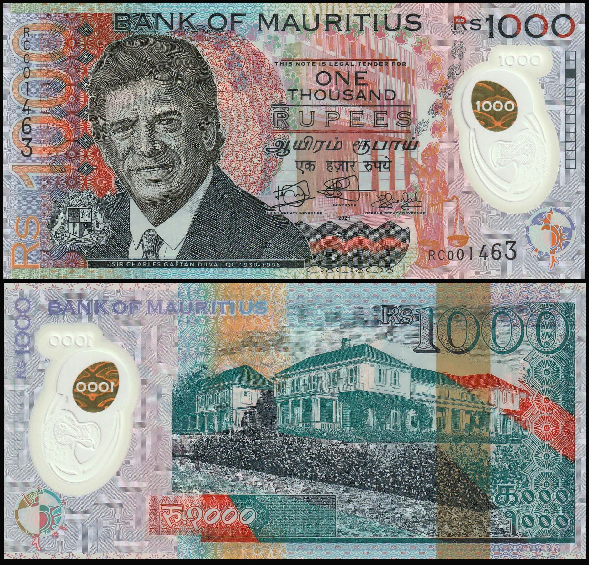 Mauritius 1000 Rupees 2024 UNC Polymer Banknote