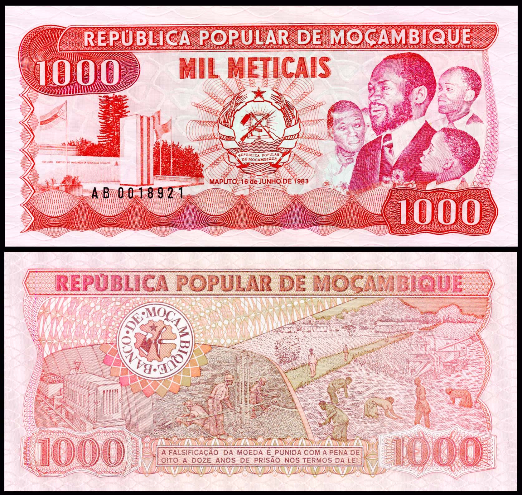 Mozambique 1000 Meticais 1983 UNC Banknote