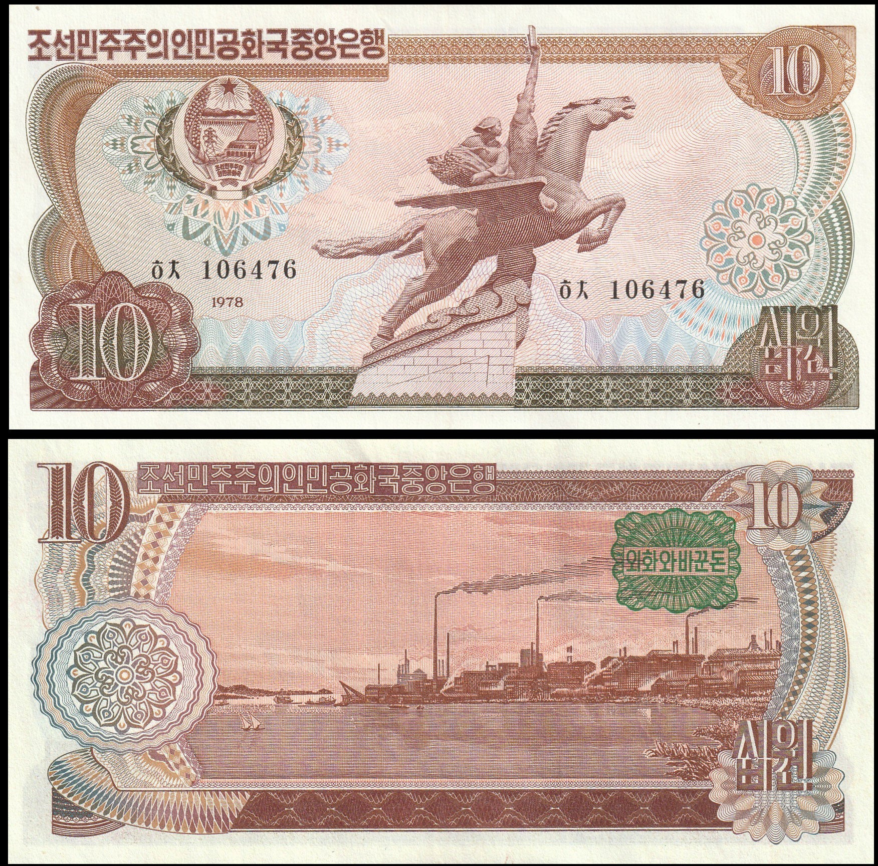 North Korea 10 Won Banknote Green Stamp Edition | Used Banknote
