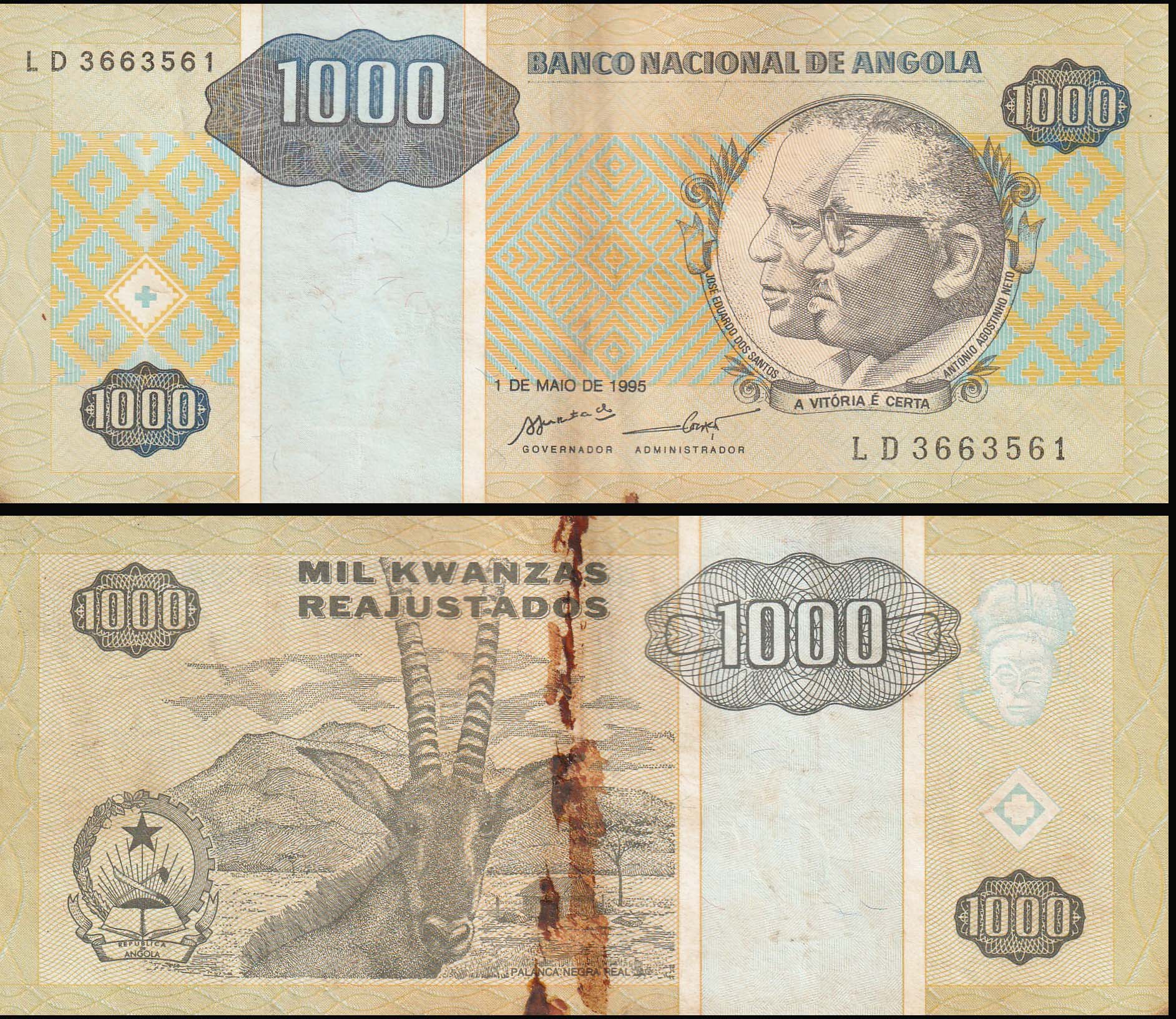 Angola 1000 Kwanzas Reajustados Used Banknote