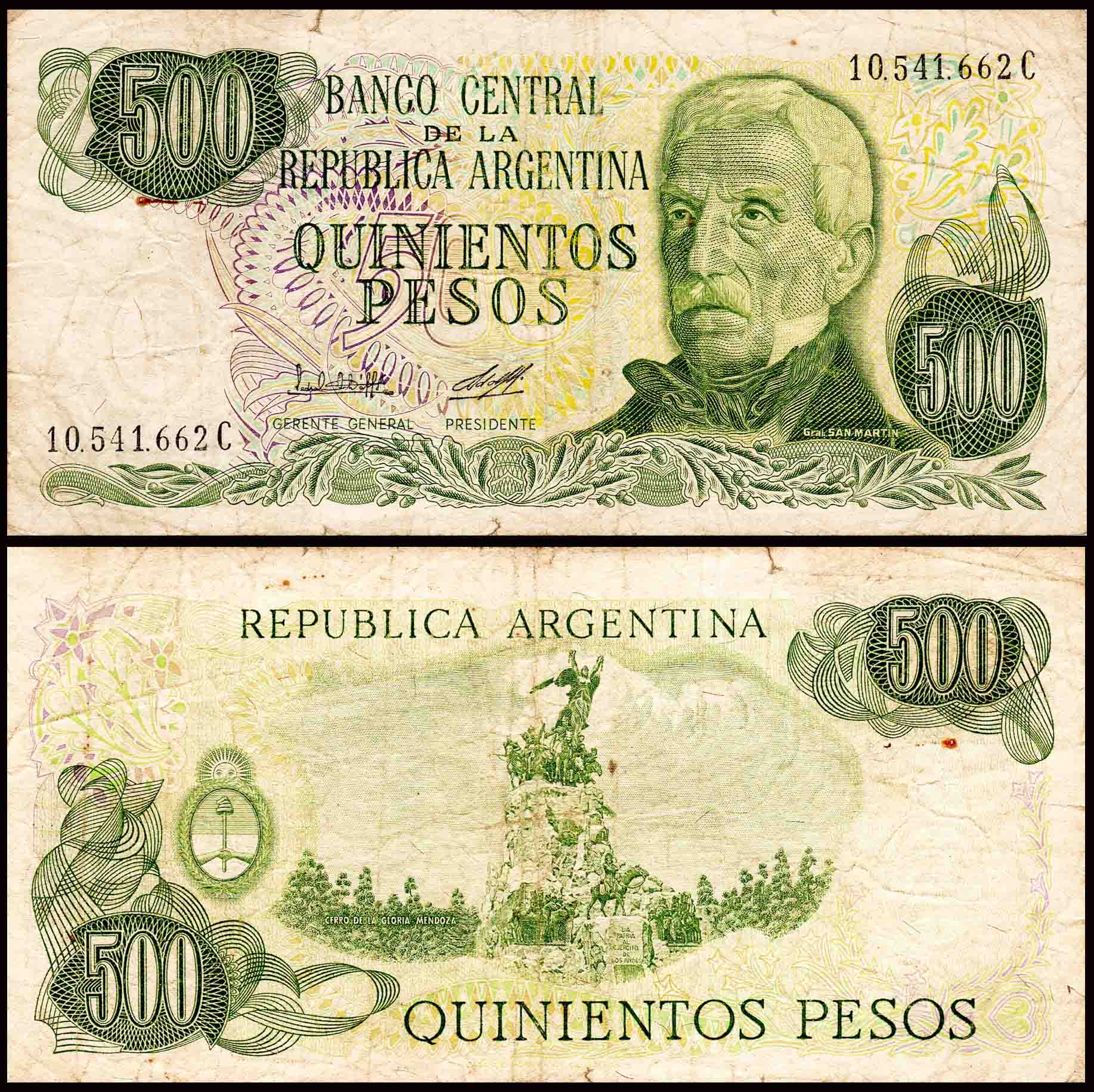 Argentina 500 Pesos Used & Damaged Banknote M148