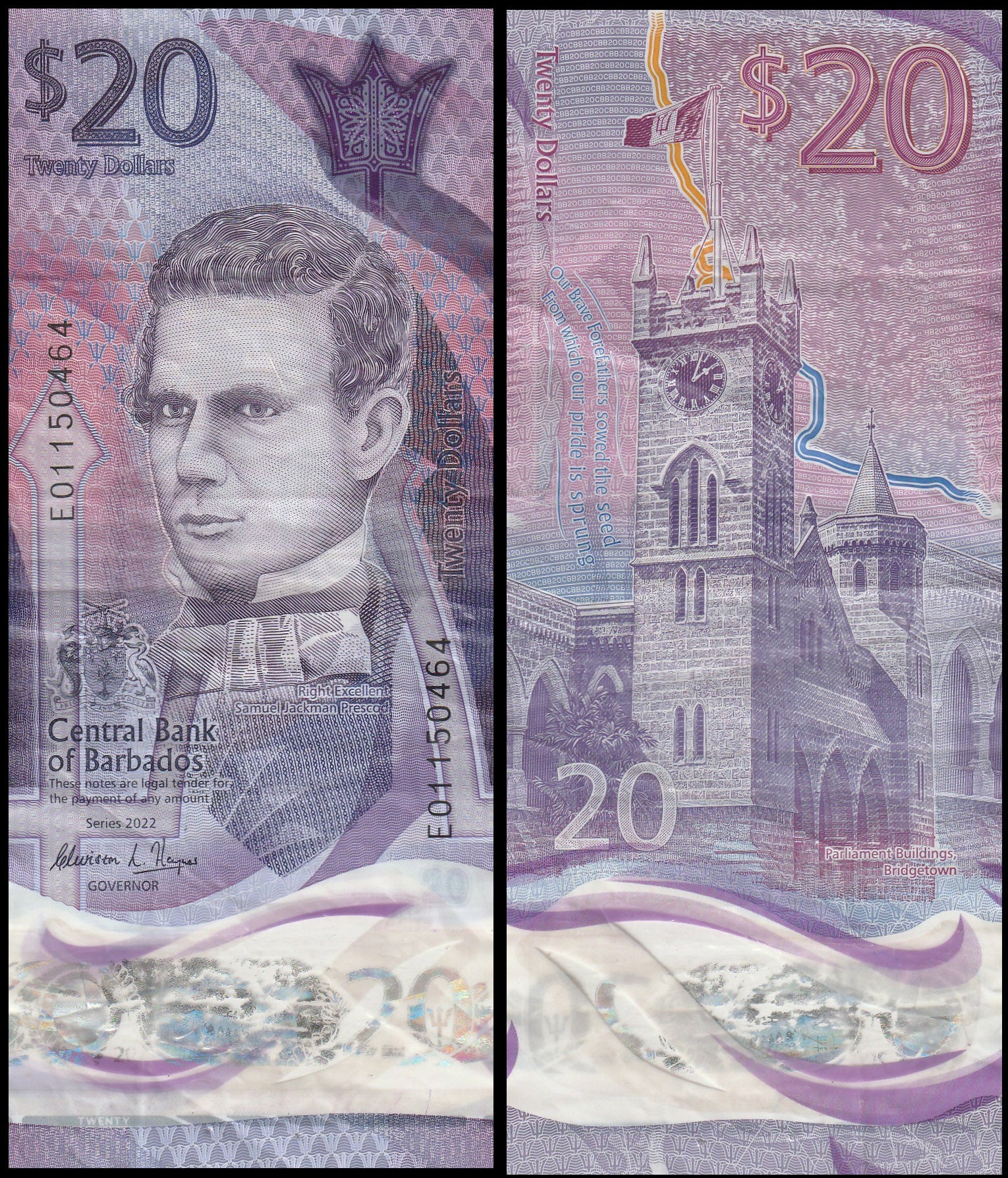 Barbados 20 Dollars Used Polymer Banknote