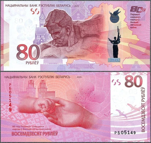 Belarus 80 Rubles 2025 Commemorative Banknote – 80th Anniversary Victory WWII, P-44 UNC with Official Folder