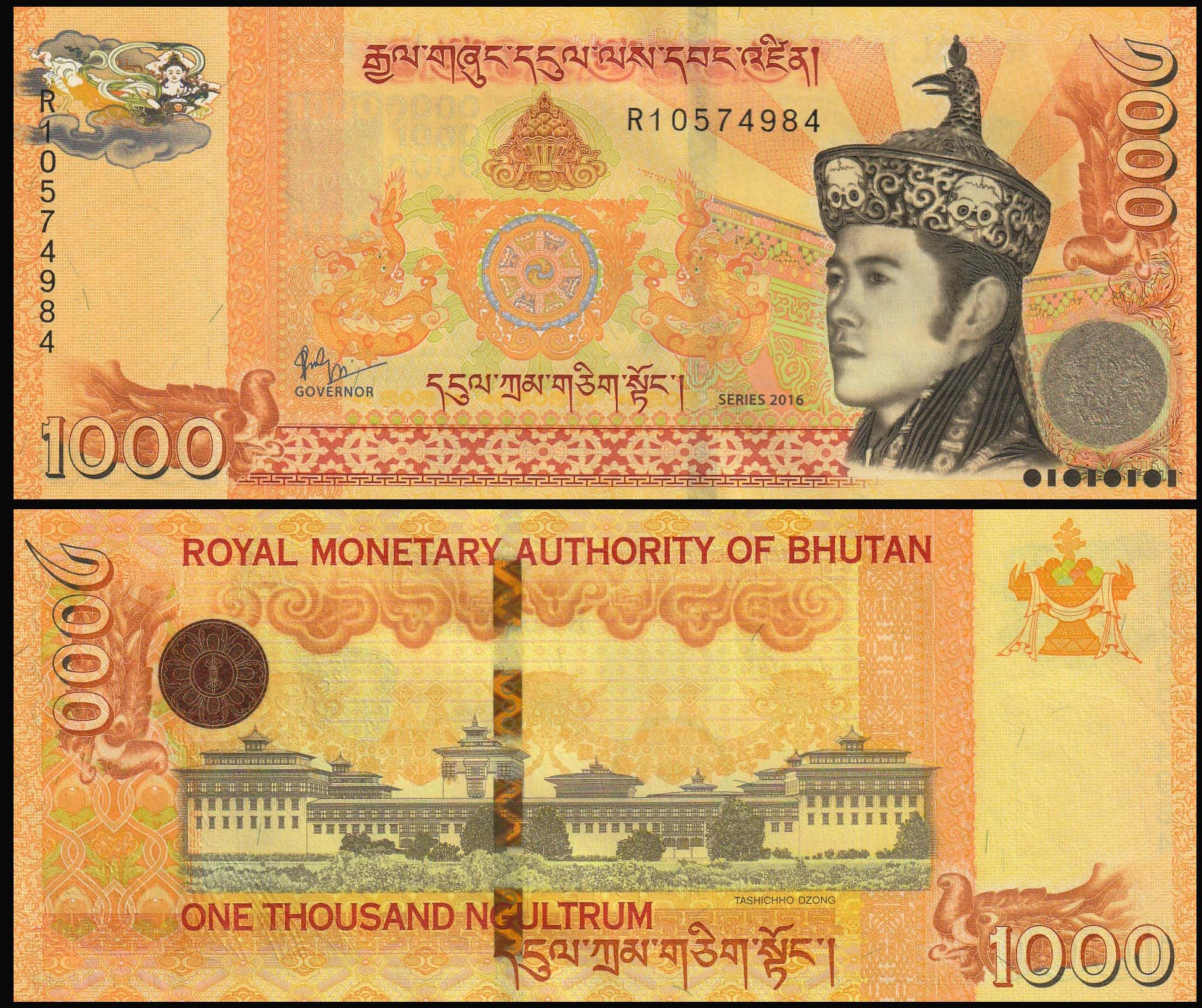 Bhutan's 1,000-Ngultrum Note of 2016 UNC Banknote