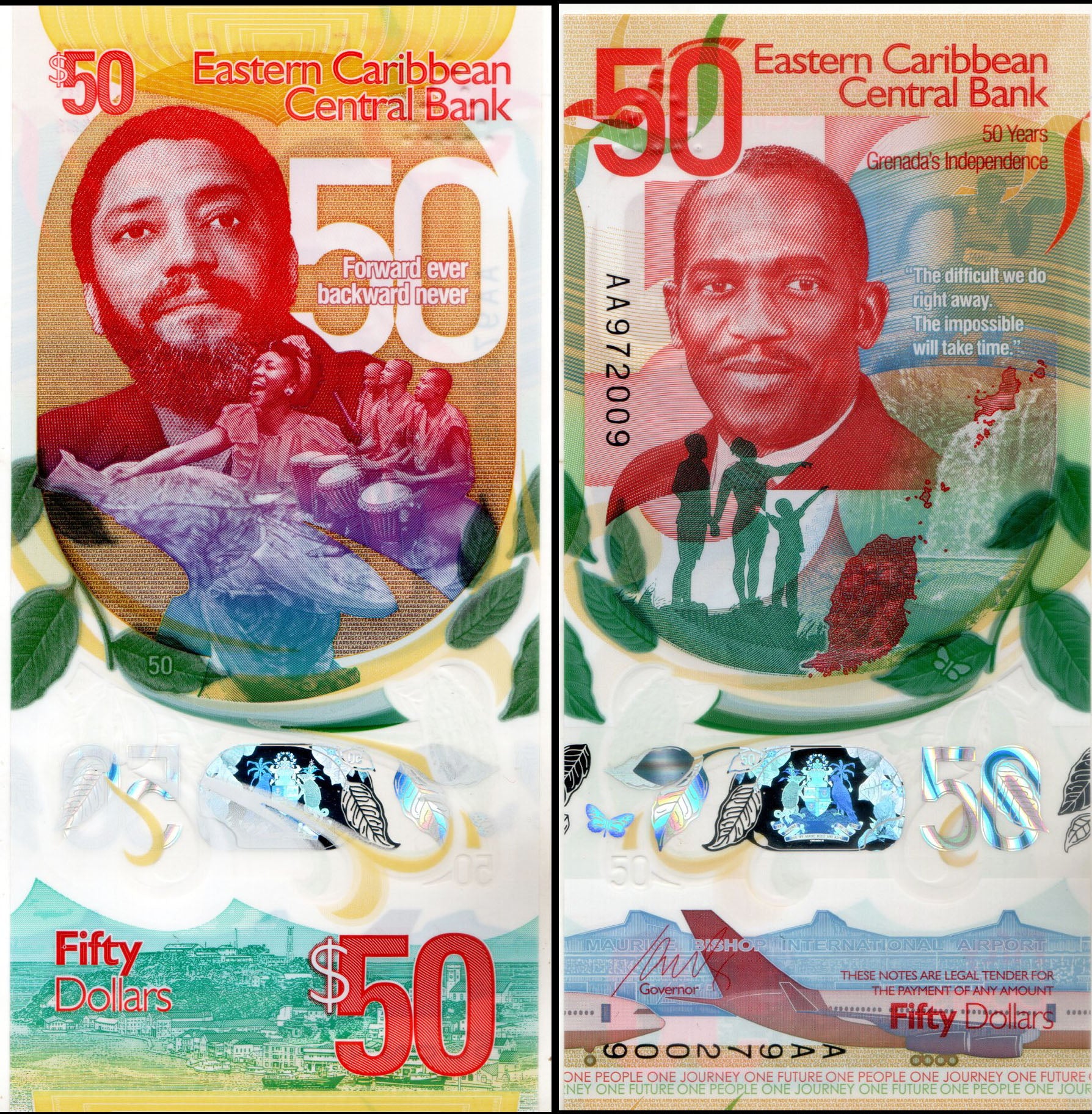 Eastern Caribbean 50 Dollars UNC Polymer Banknote