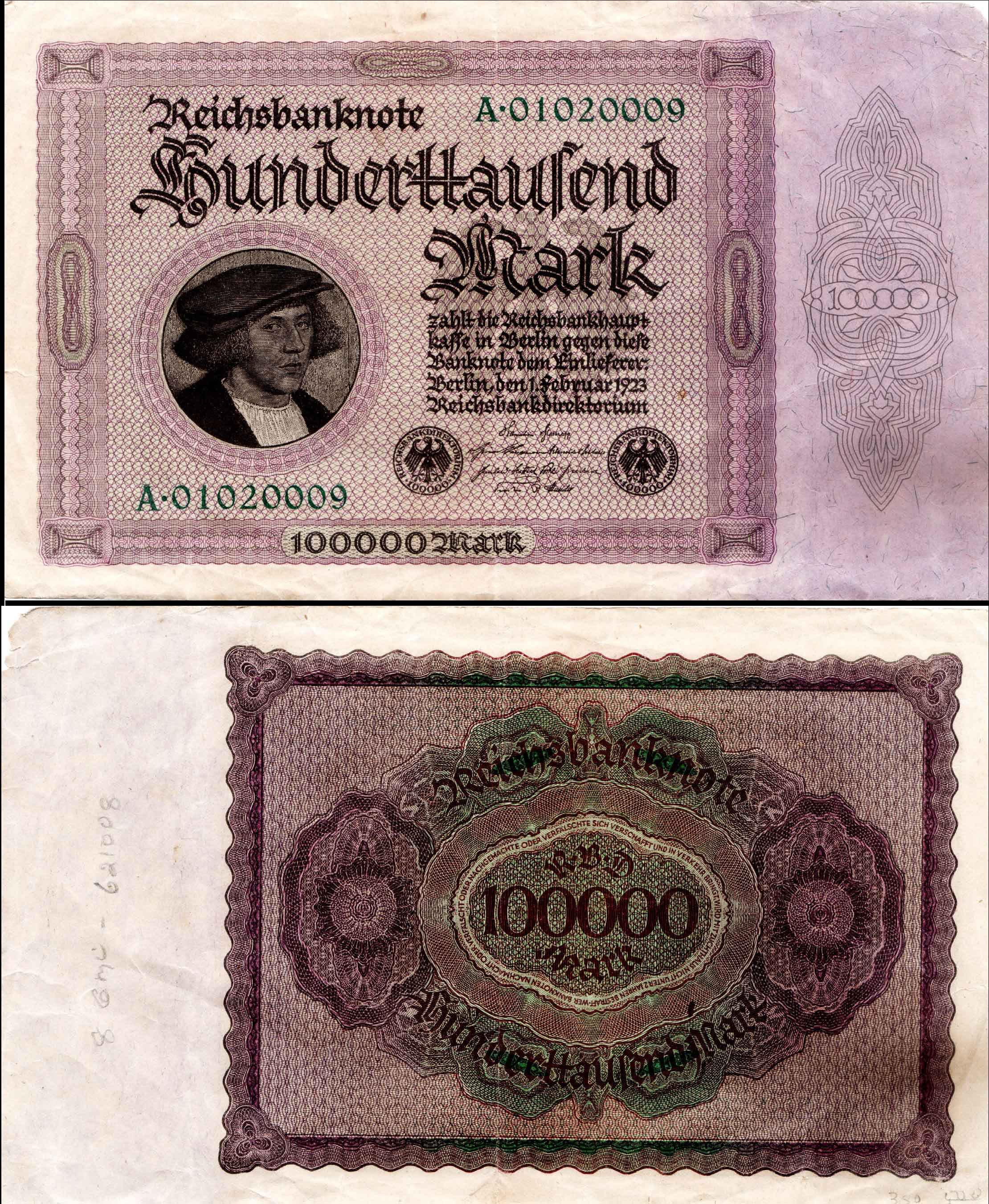 German 100,000 Mark Reichsbanknote Used & Damaged Banknote