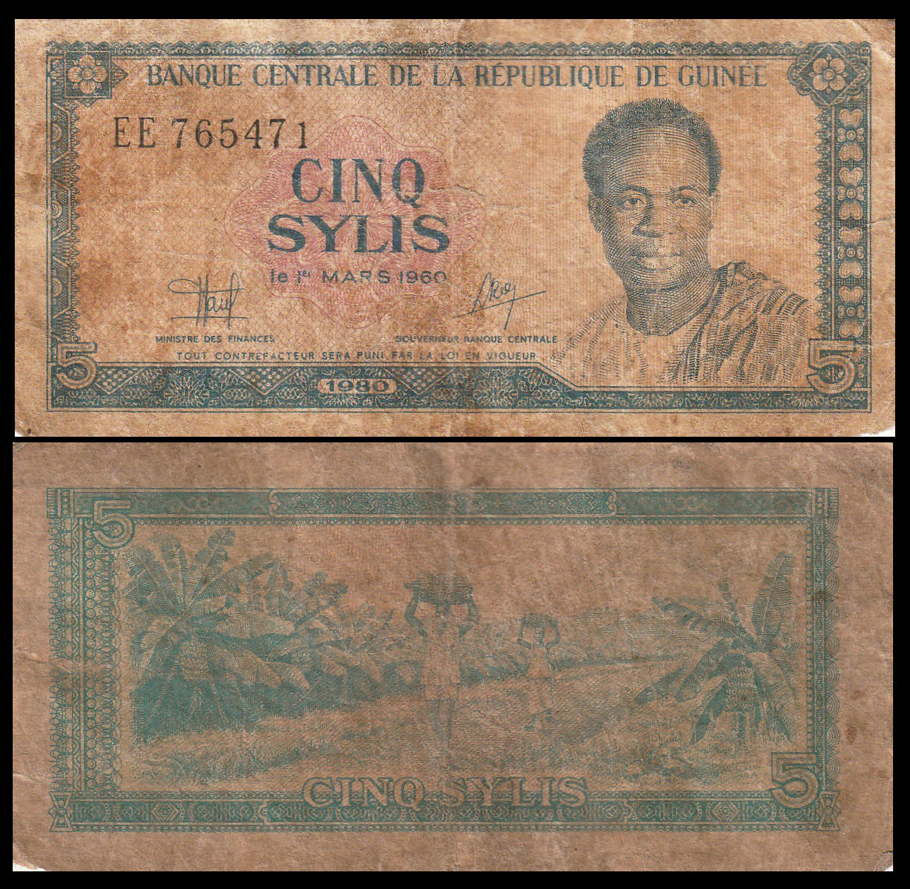 Guinea Banknote 5 Sylis Very Used & Damaged Banknote