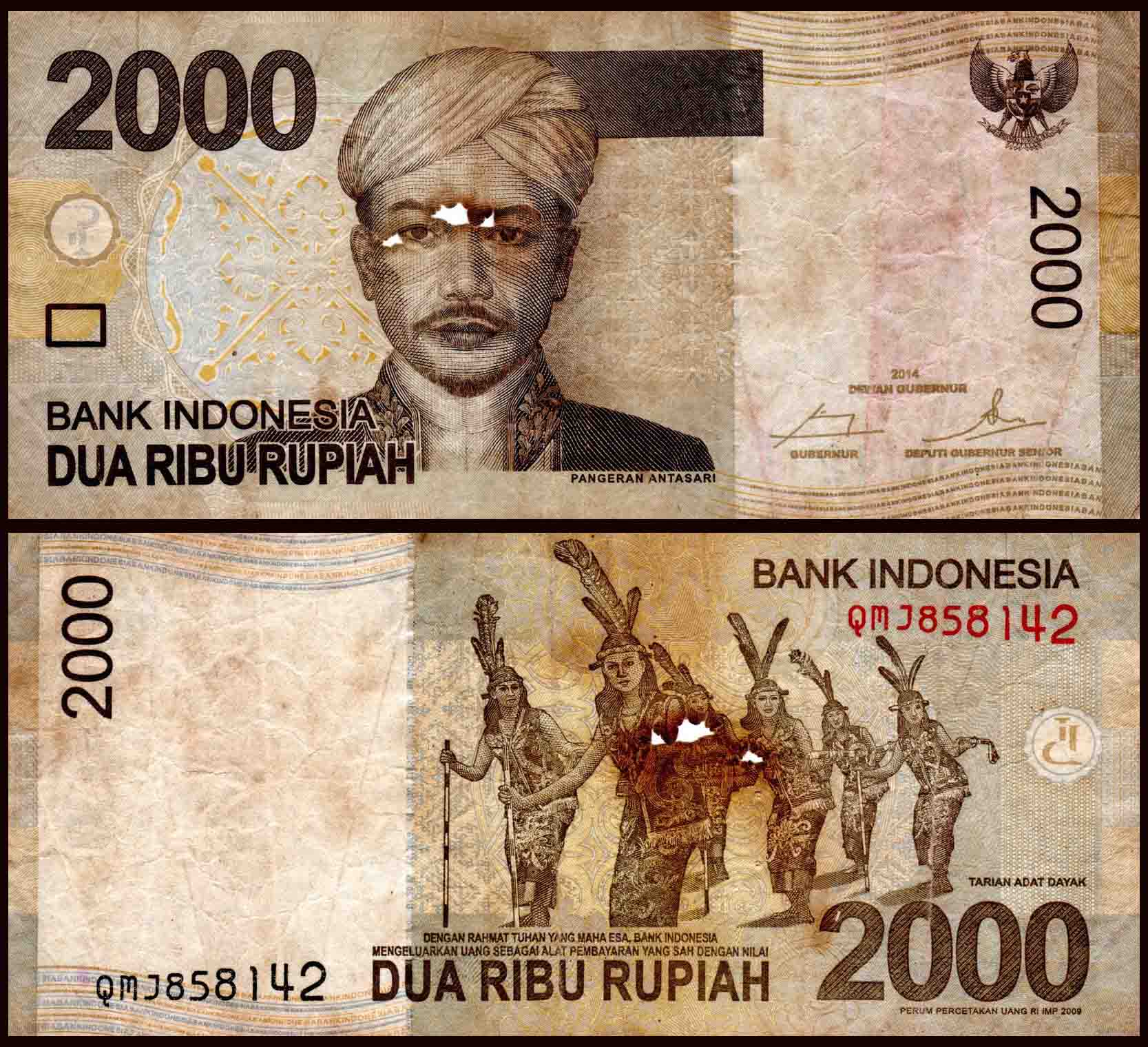 Indonesia 2000 Rupiah Very Used & Damaged Banknote