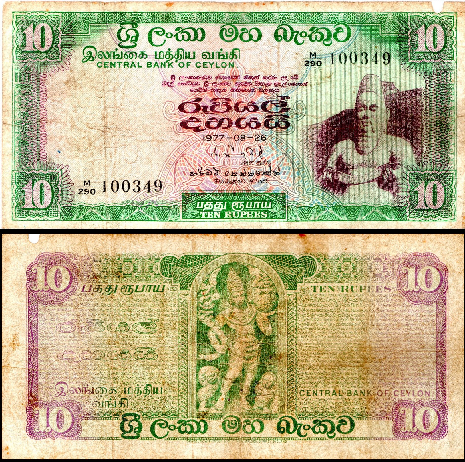 Ceylon 10 Rupees 1977-08-26 Used Banknote