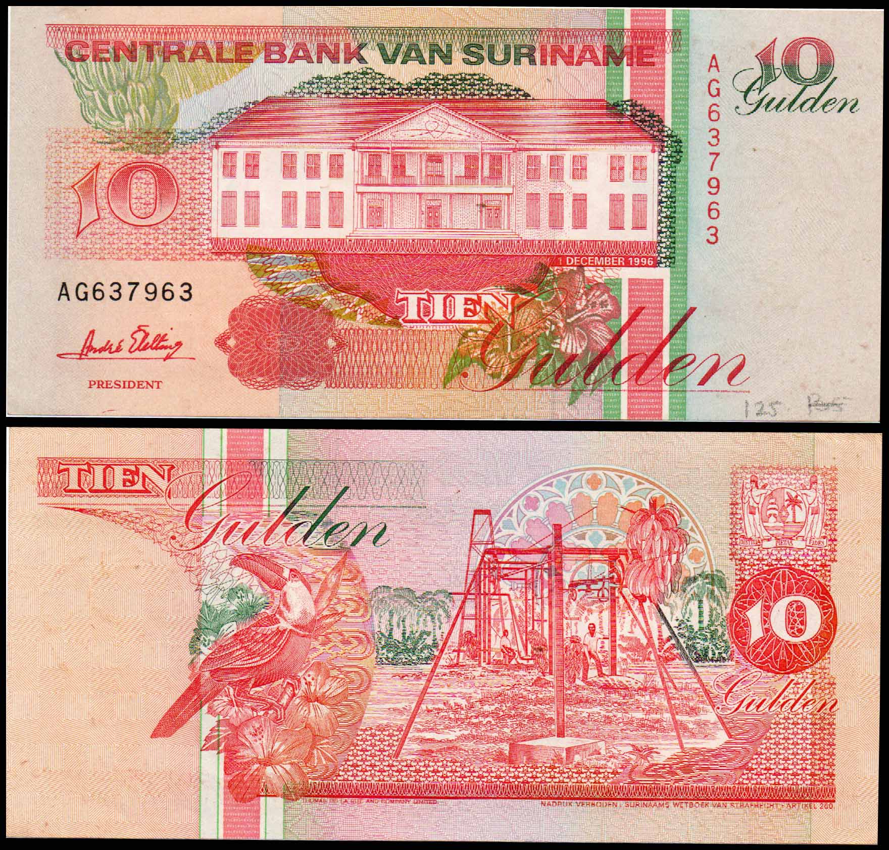 Suriname 10 Gulden UNC Banknote ( Central Bank Building" )