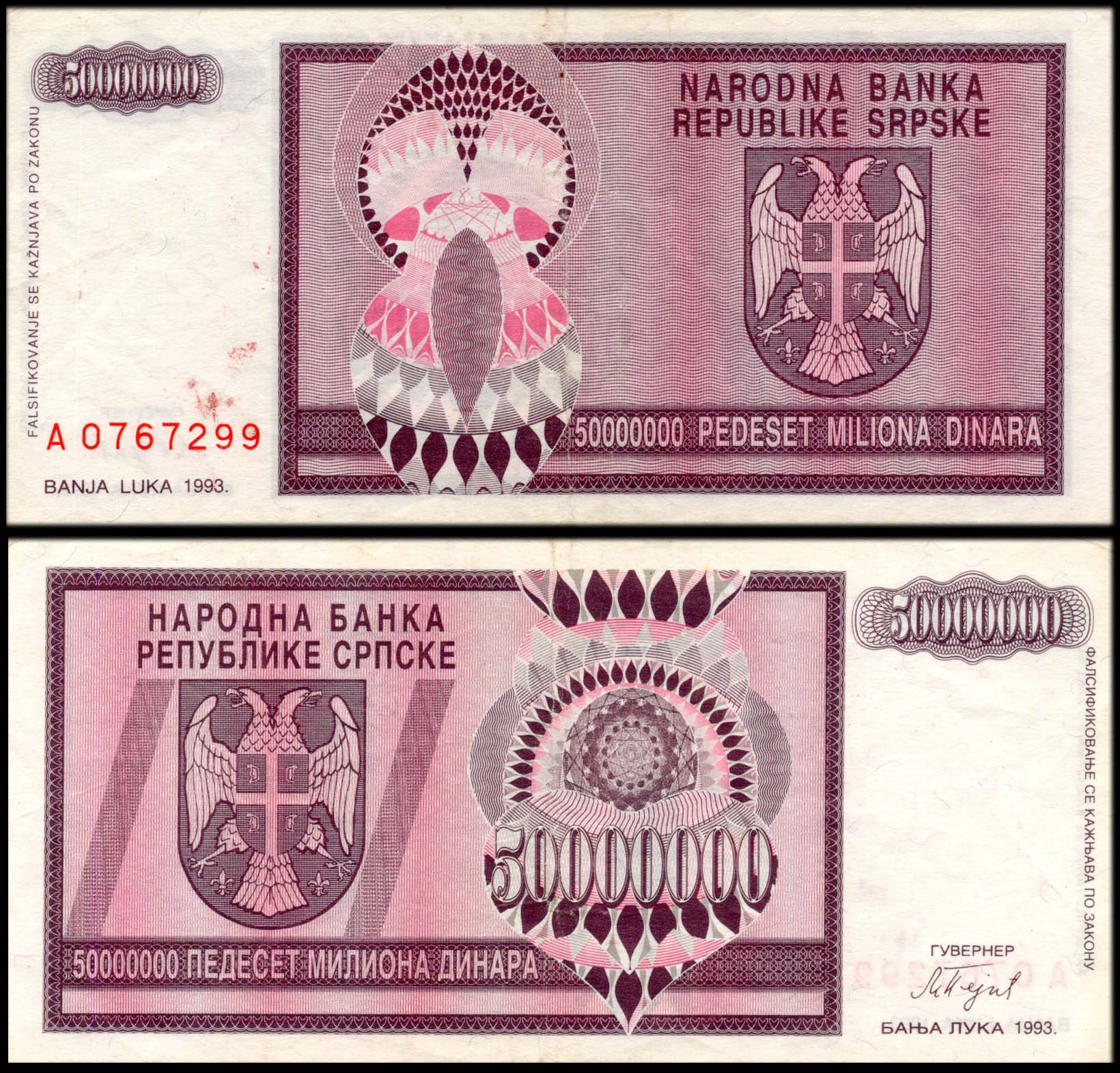 Bosnia and Herzegovina 50000000 Dinaras Used Banknote
