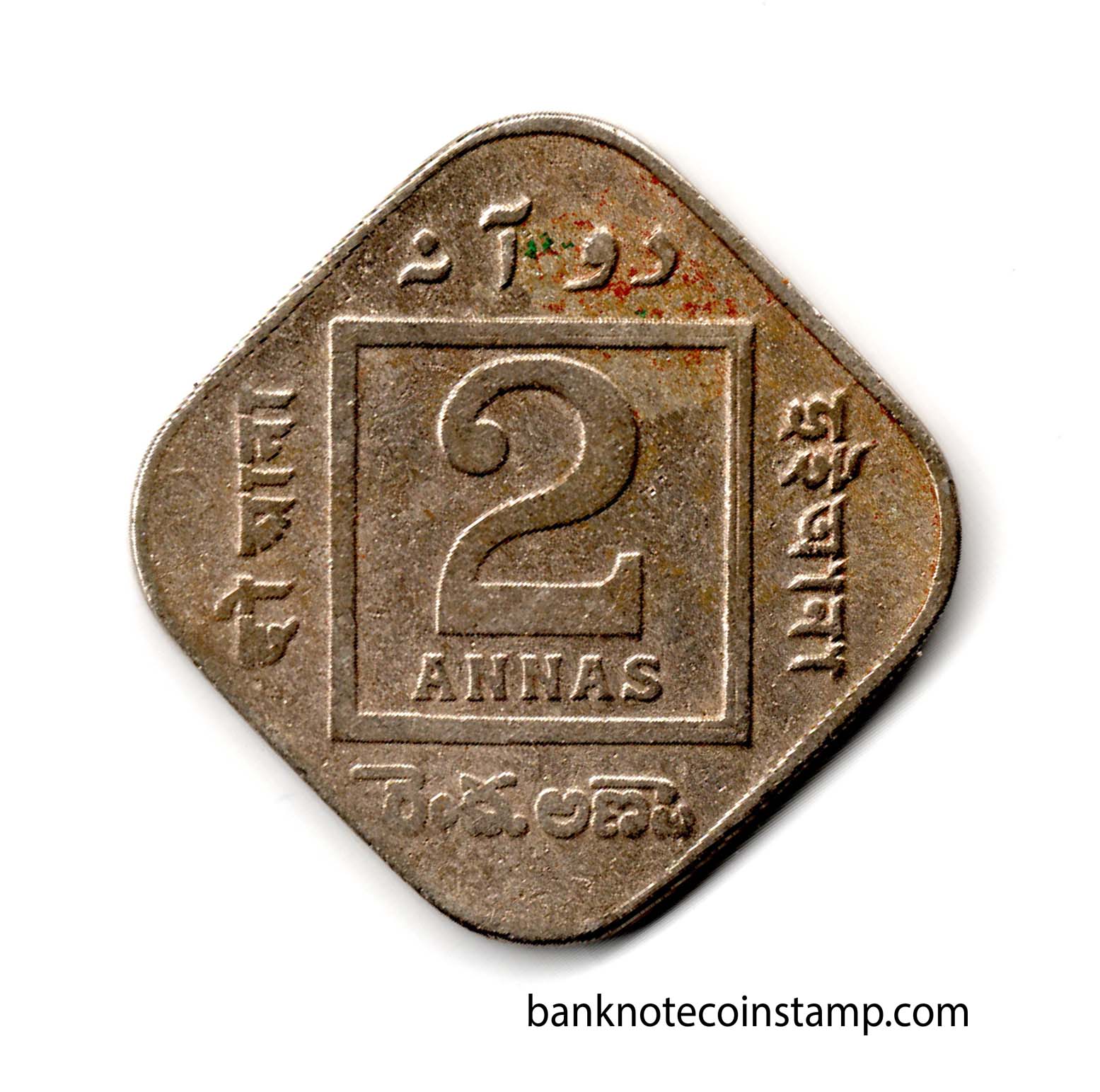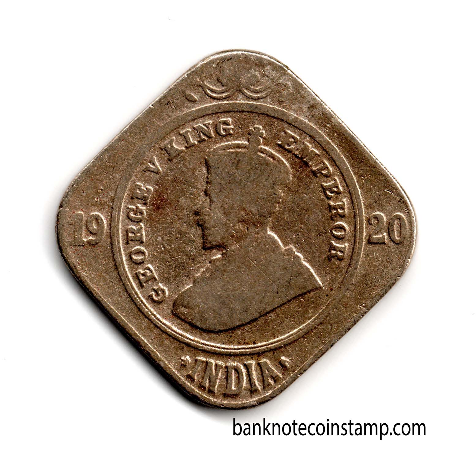 British India George V king Emperor 2 Annas 1920 Used Coin