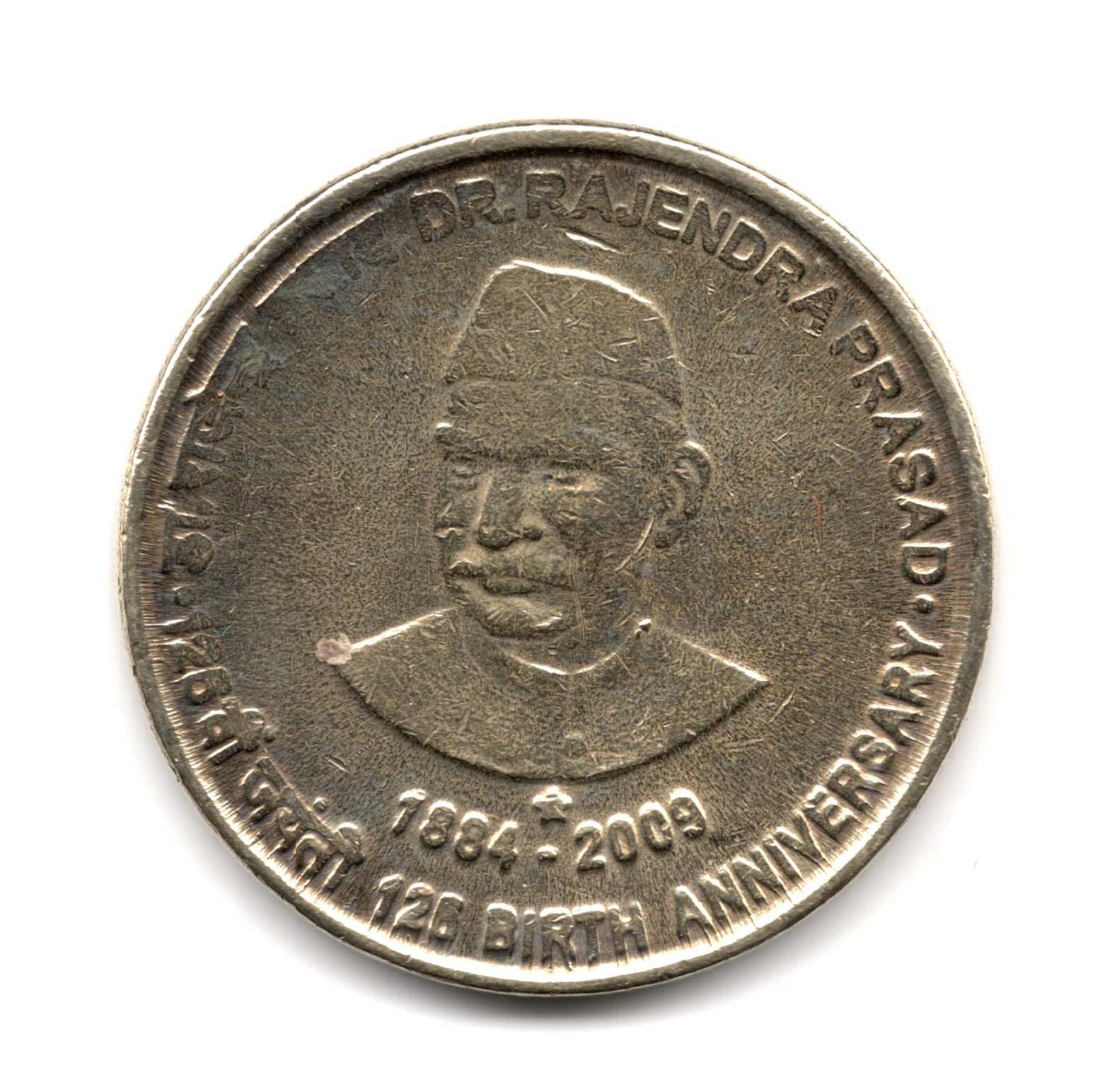 India 125th Birth Anniversary of Dr. Rajendra Prasad 5 Rupees Used Coin