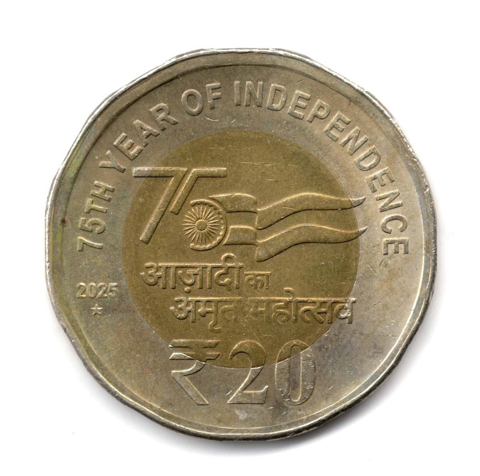 India 75th year of independence 20 Rupees Used Coin (Year 2025)