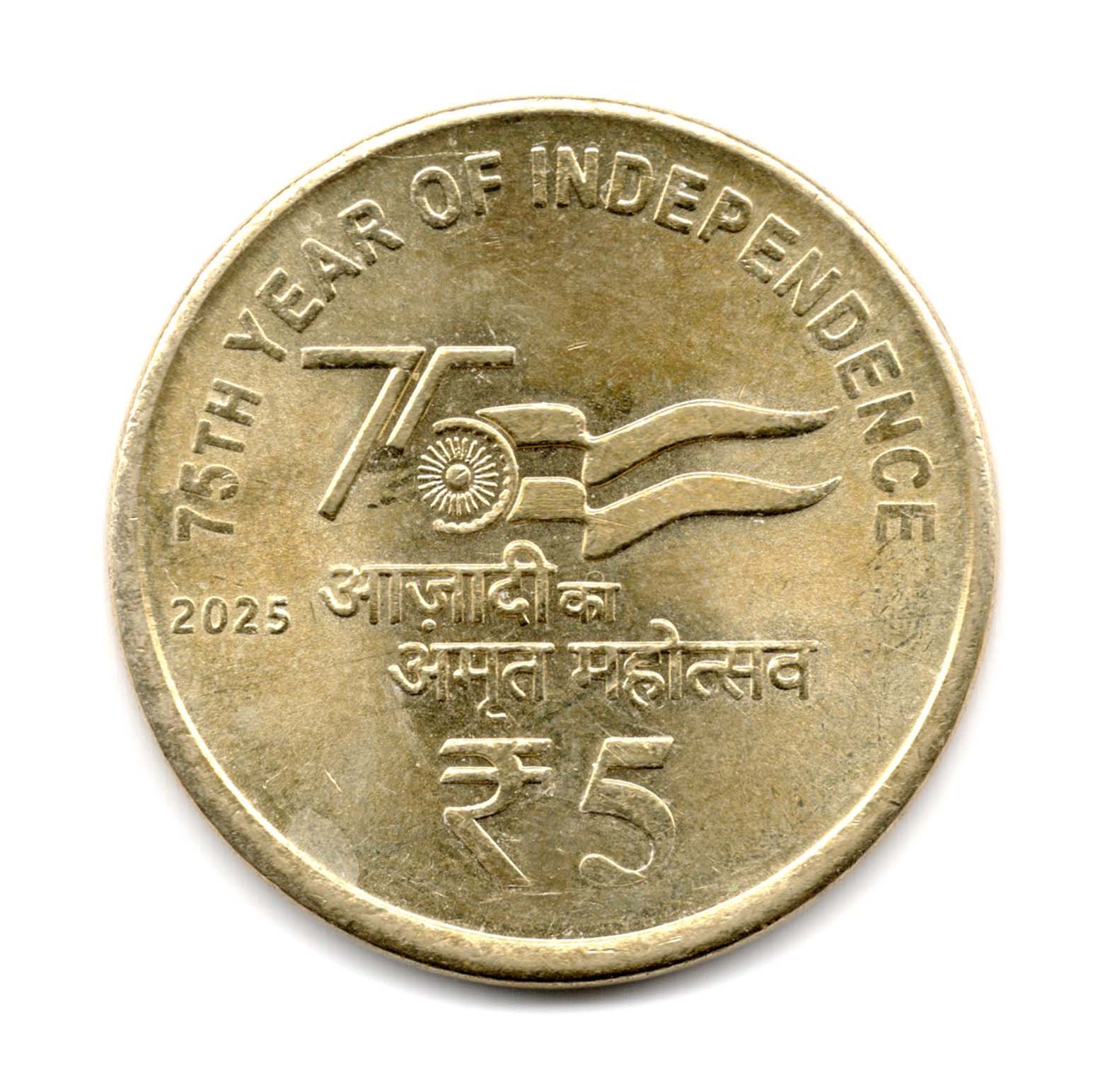 India 75th Year Of Independence 5 RupeeS Used Coin Year 2025
