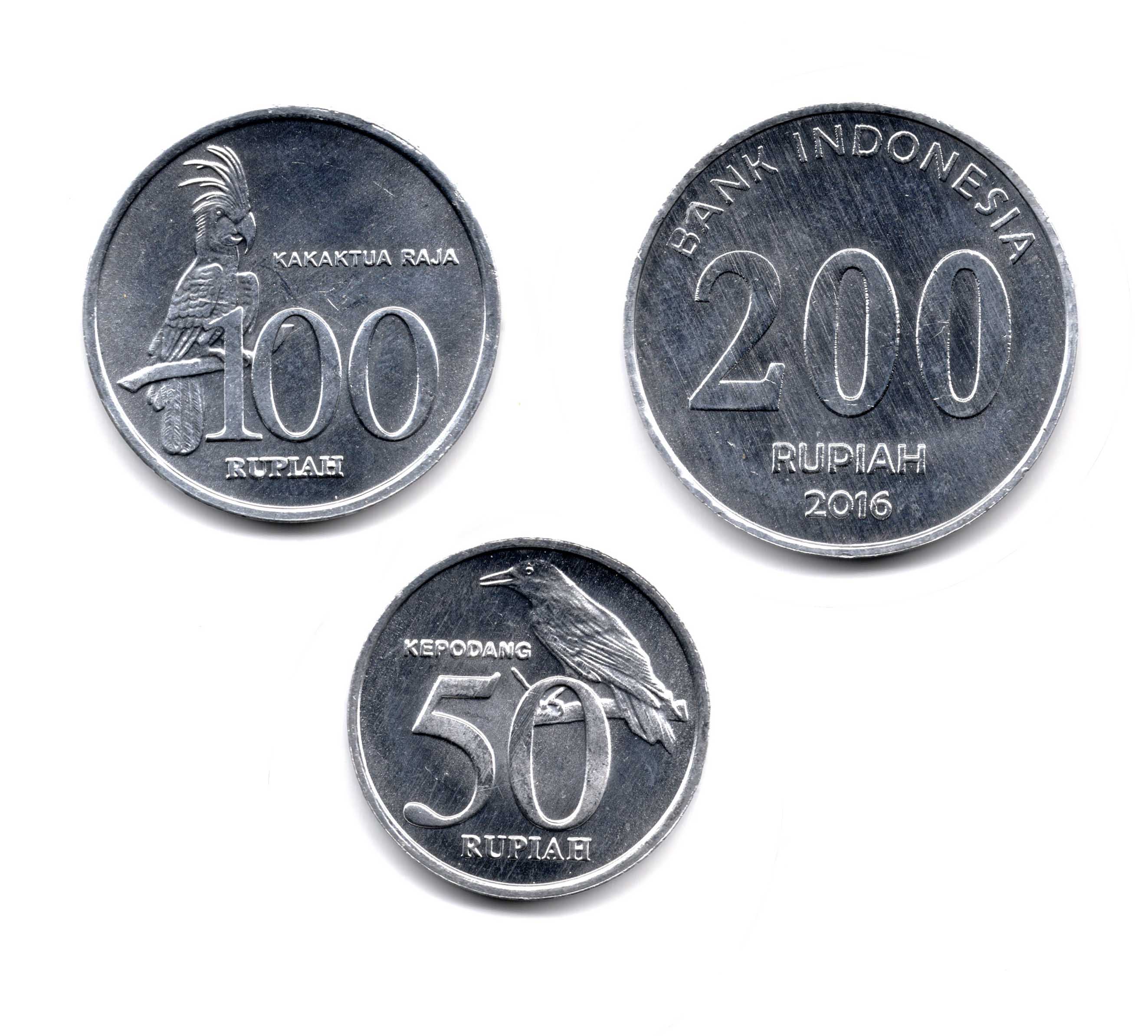 Indonesia 50, 100, 200 Rupiah Used Coins
