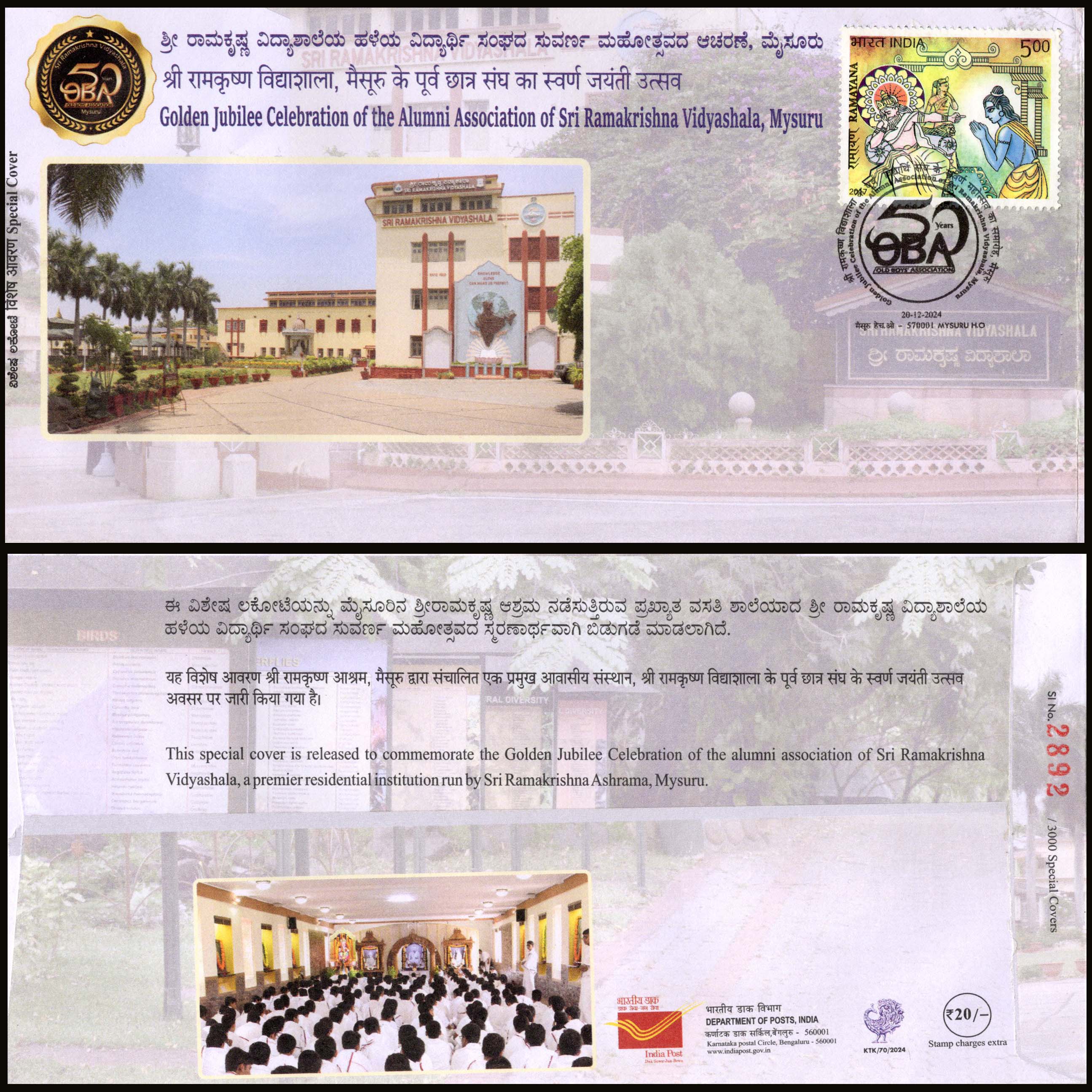 India Sri Ramakrishna Vidyashala, Mysuru Special Cover