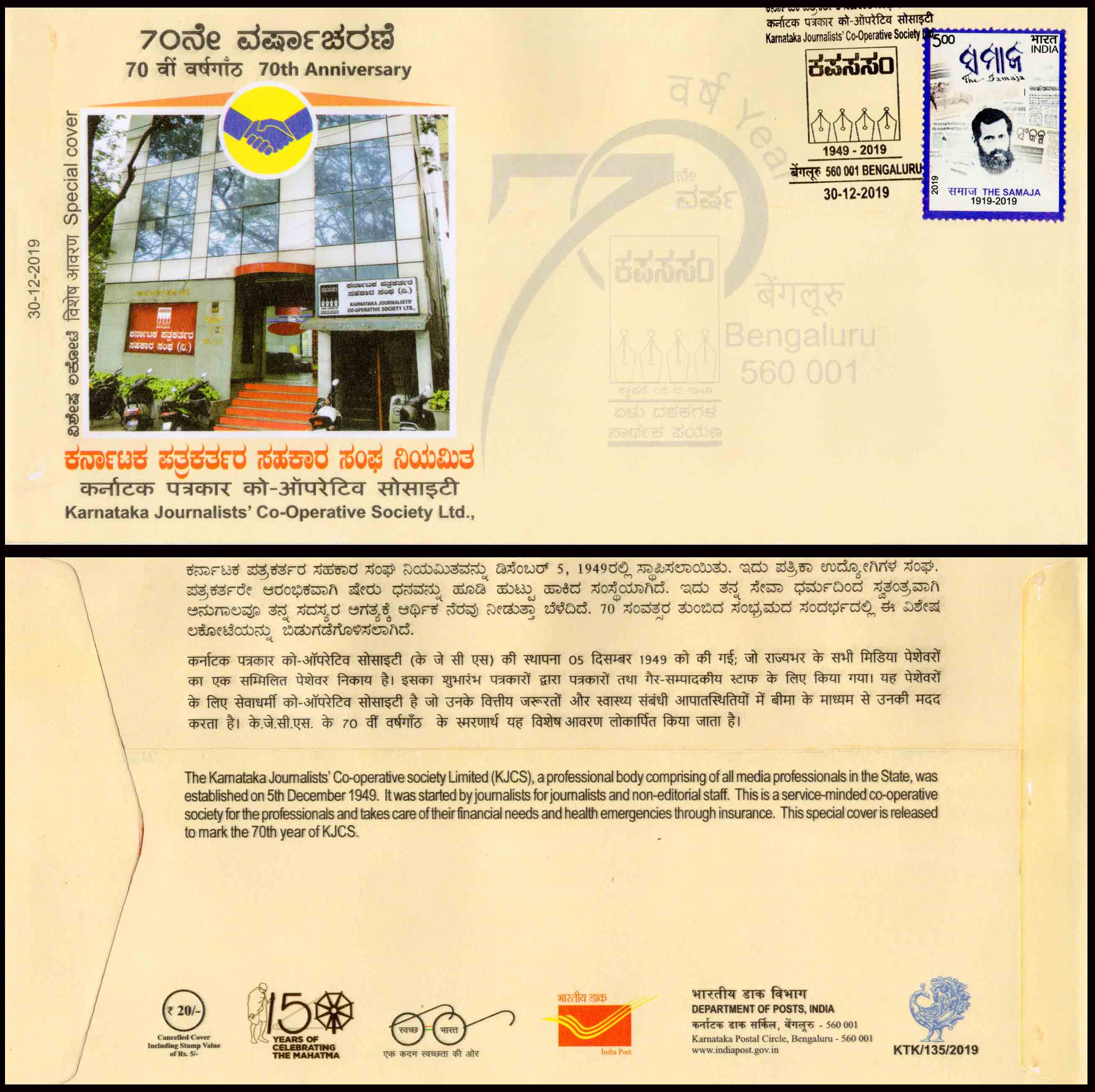 India 70th Year Celebrations Karnataka Journalists Co-Operative Society Ltd Special Cover