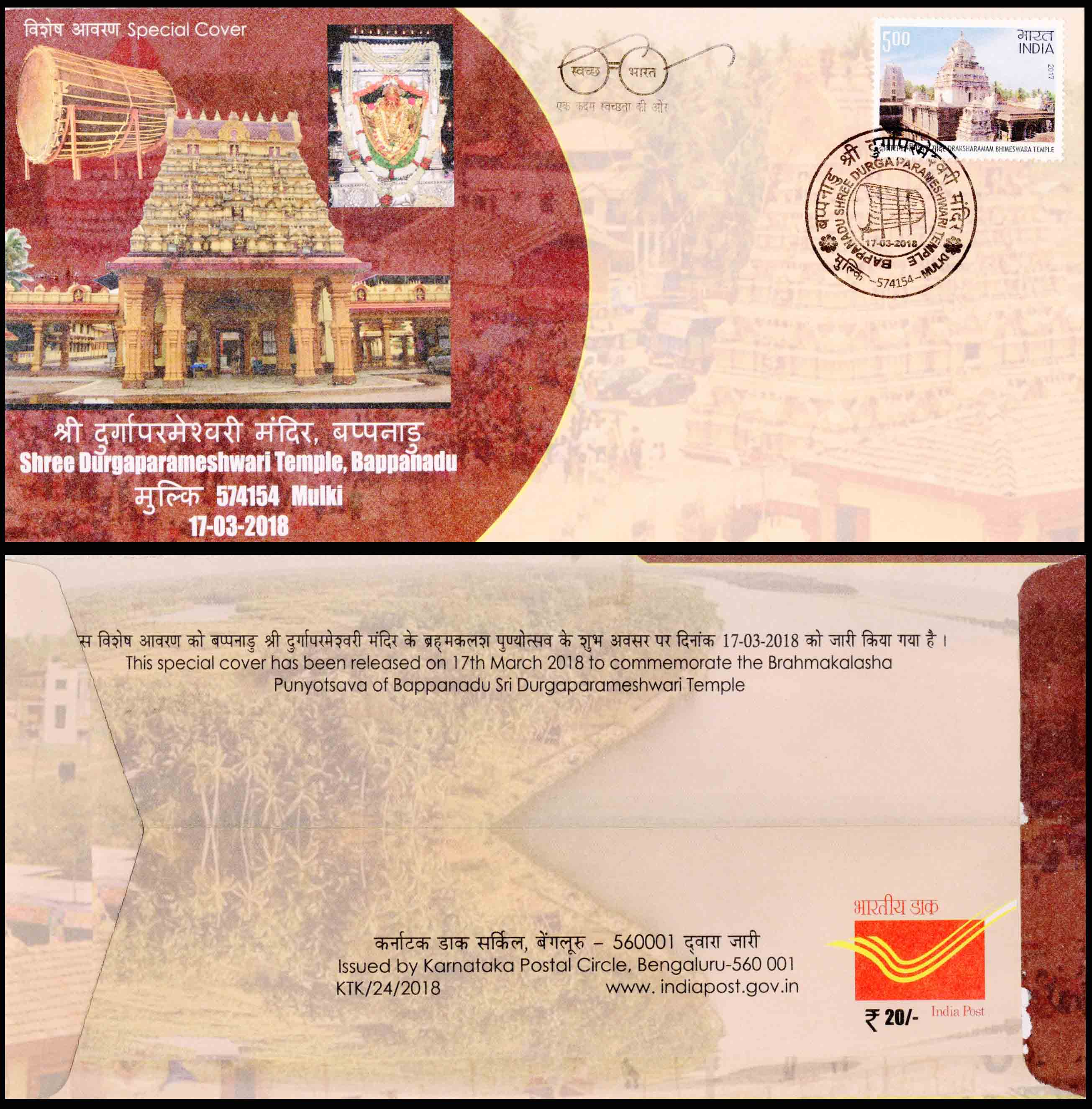 India Shree Durgaparameshwari Temple Bappnadu Special Cover