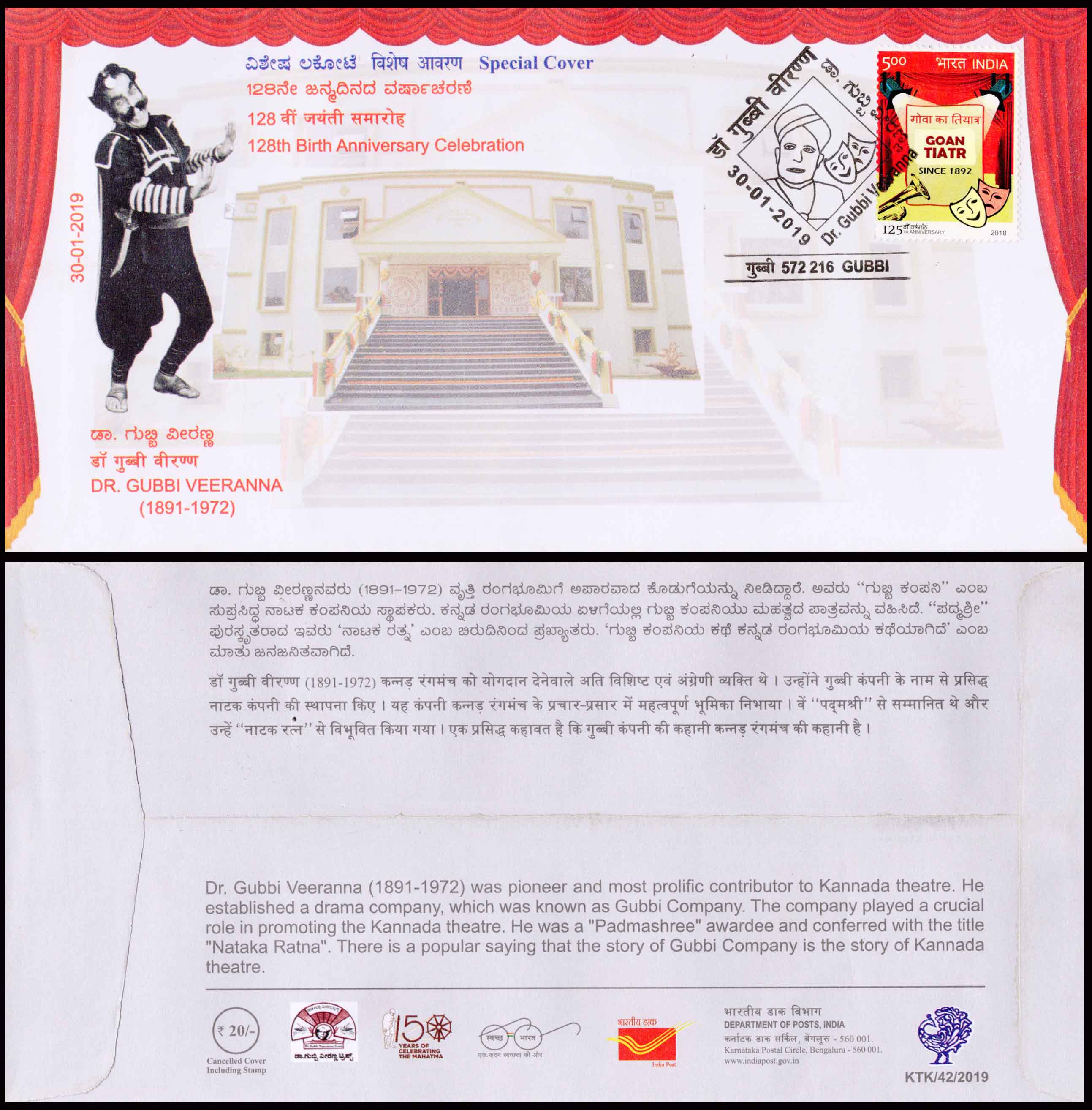 India Dr. Gubbi Veeranna – 128th Birth Anniversary Celebration Special Cover