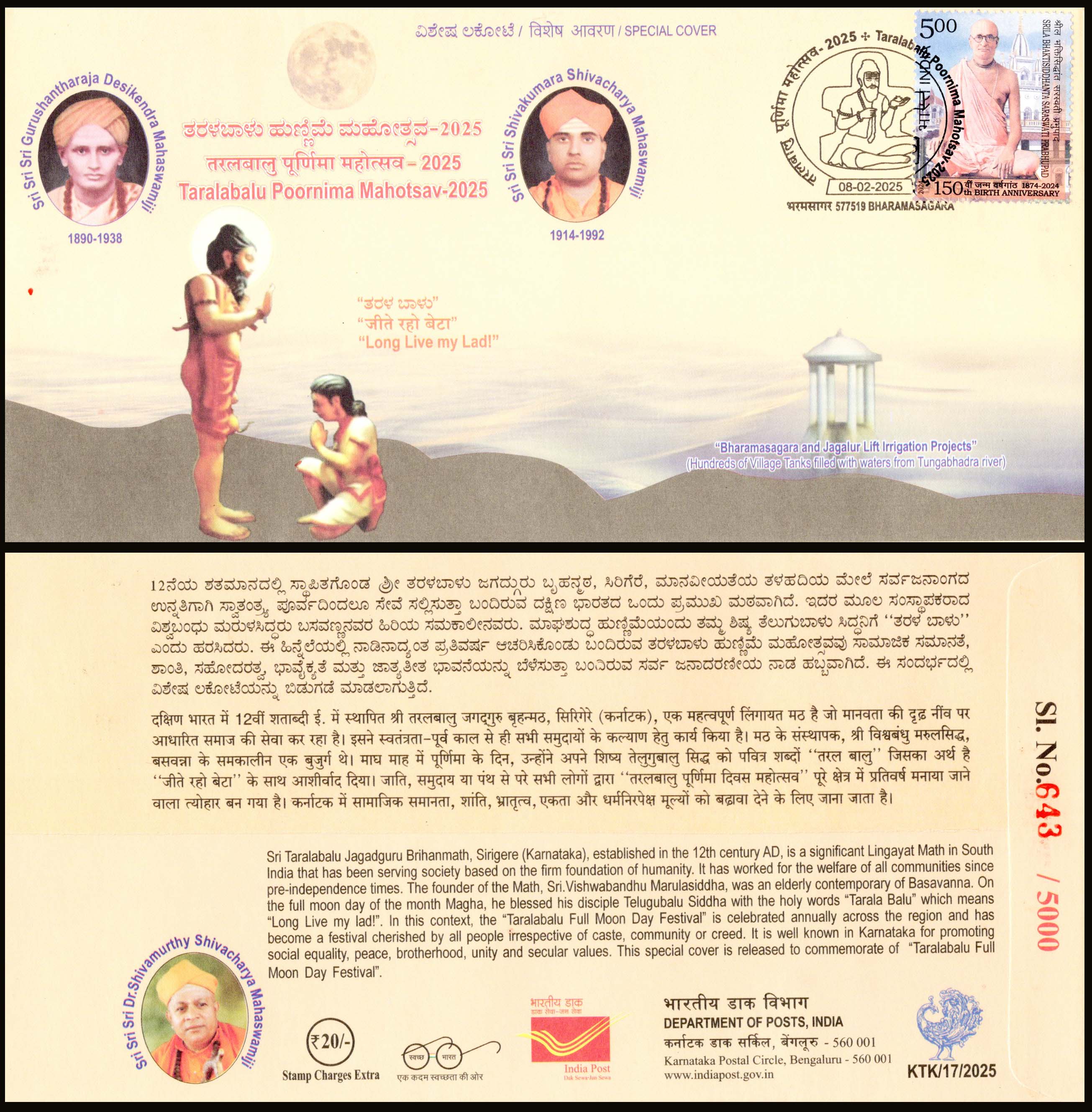 India Taralabalu Poornima Mahotsav Special Cover