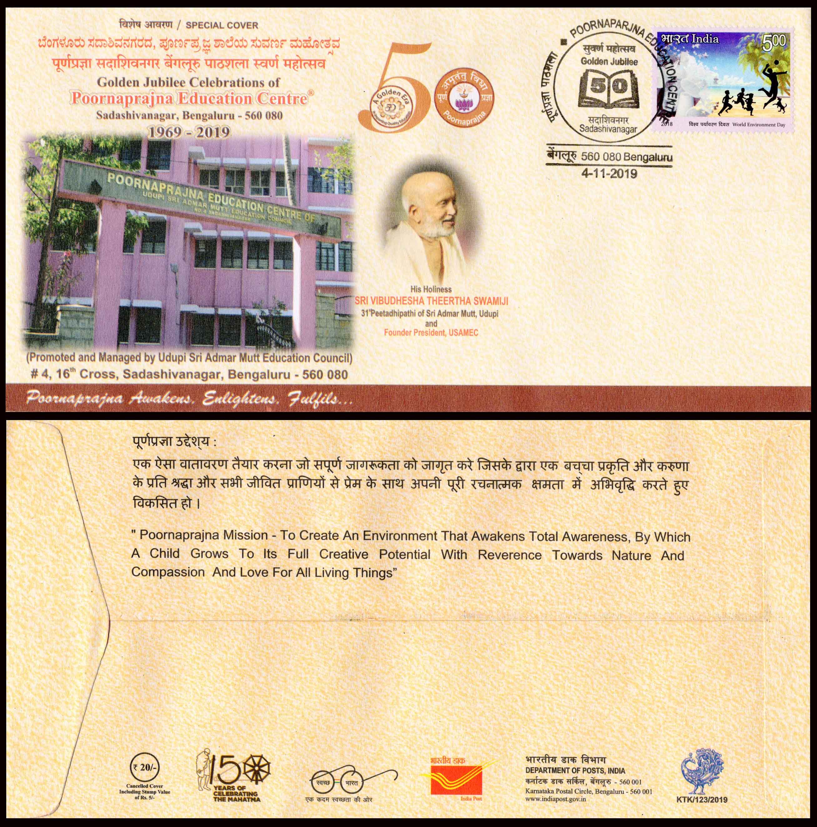 India Sri Vibudhesha Teertha Swamiji Hinduism Special Cover