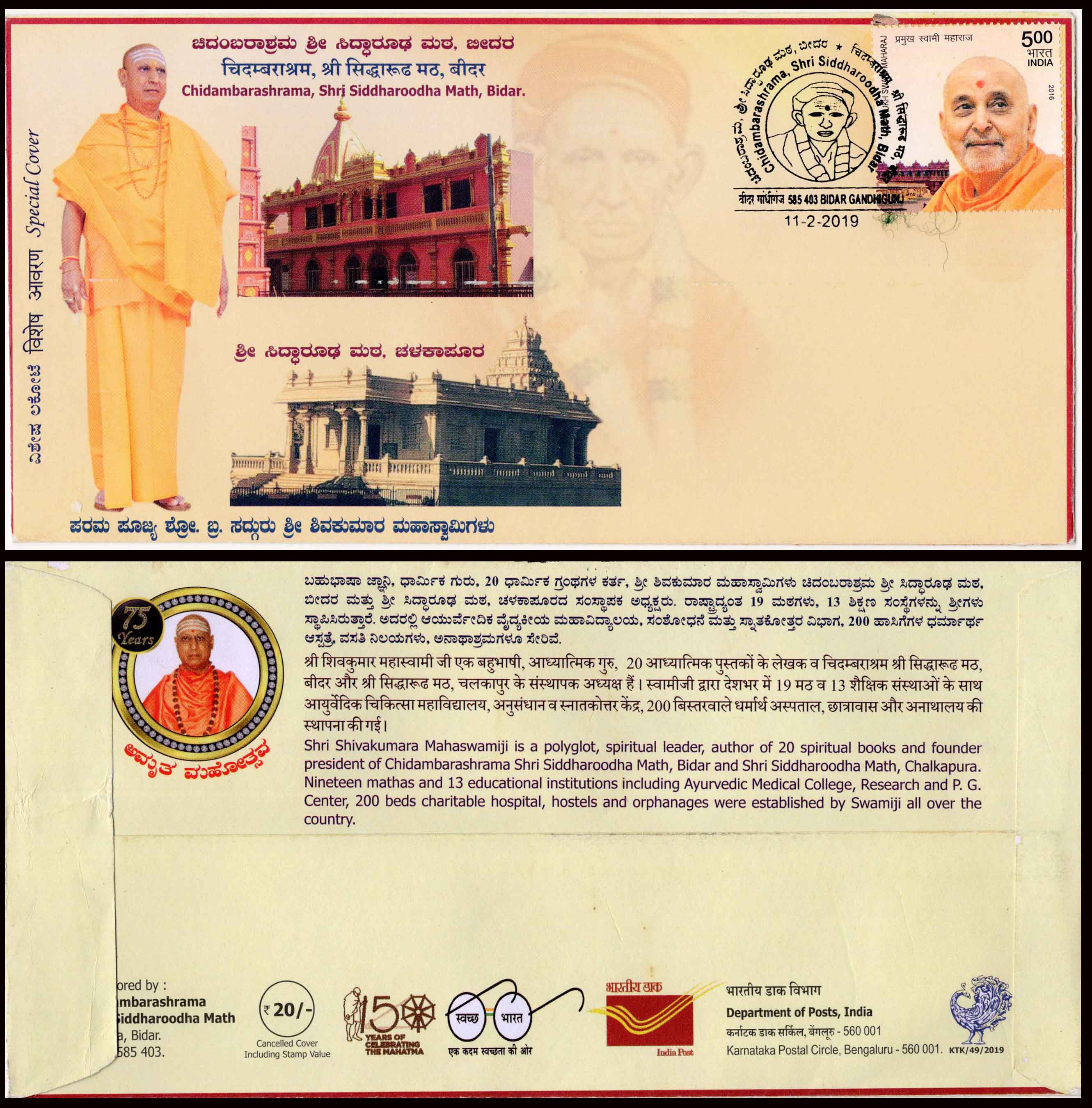 India Chidambarashrama Shri Siddharoodha Math Bidar Special Cover