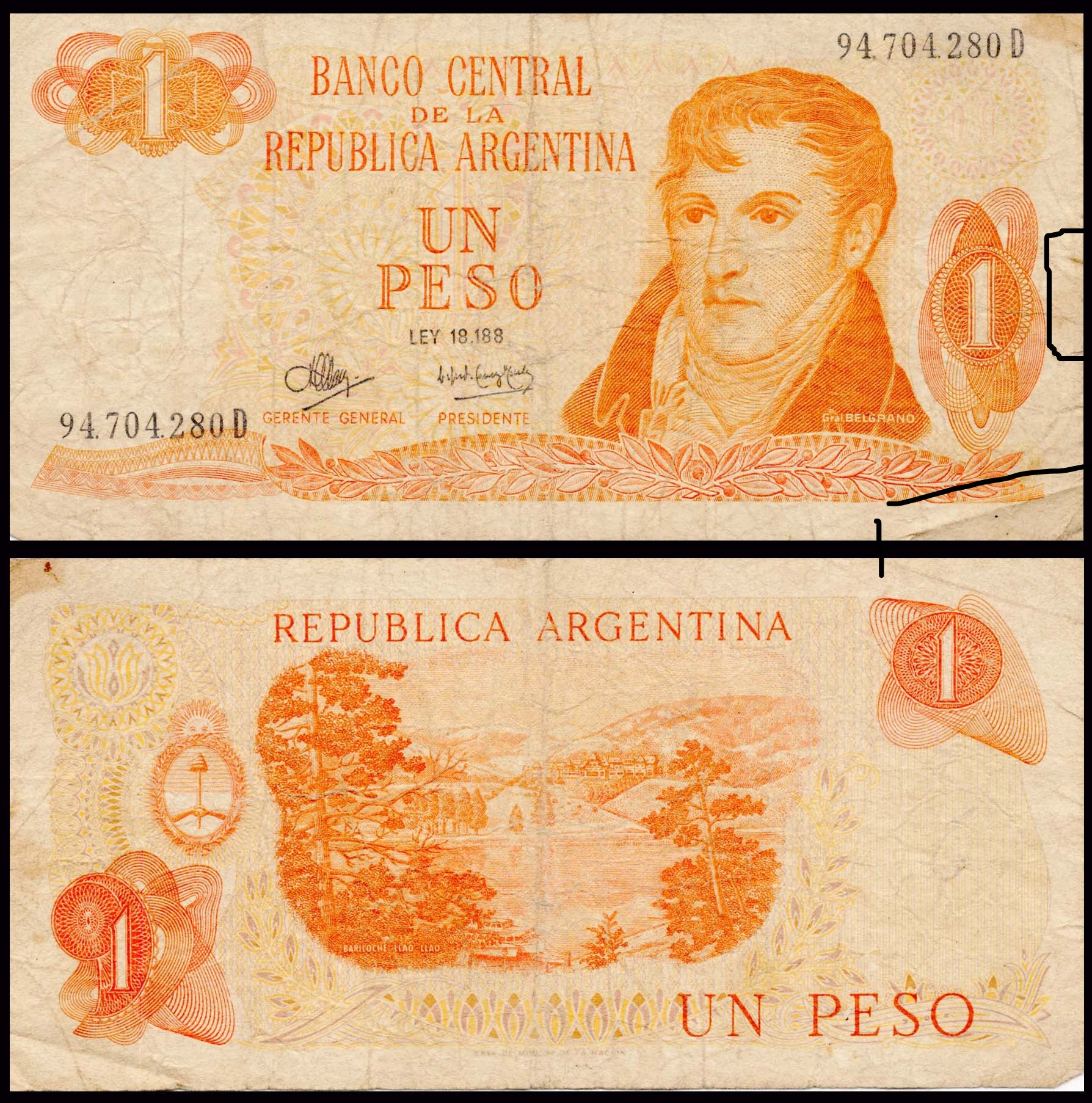 Argentina 1 Peso Very Used & Damaged Banknote M148