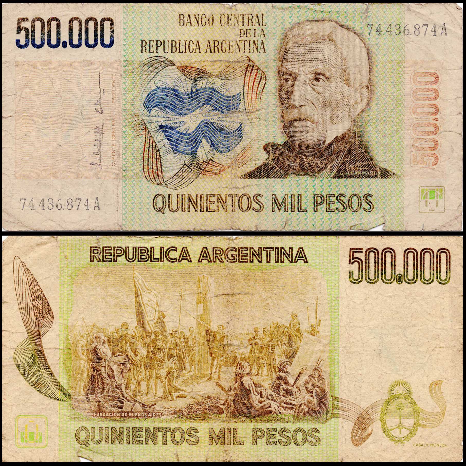 Argentina 500000 Pesos Very Used & Damaged Banknote