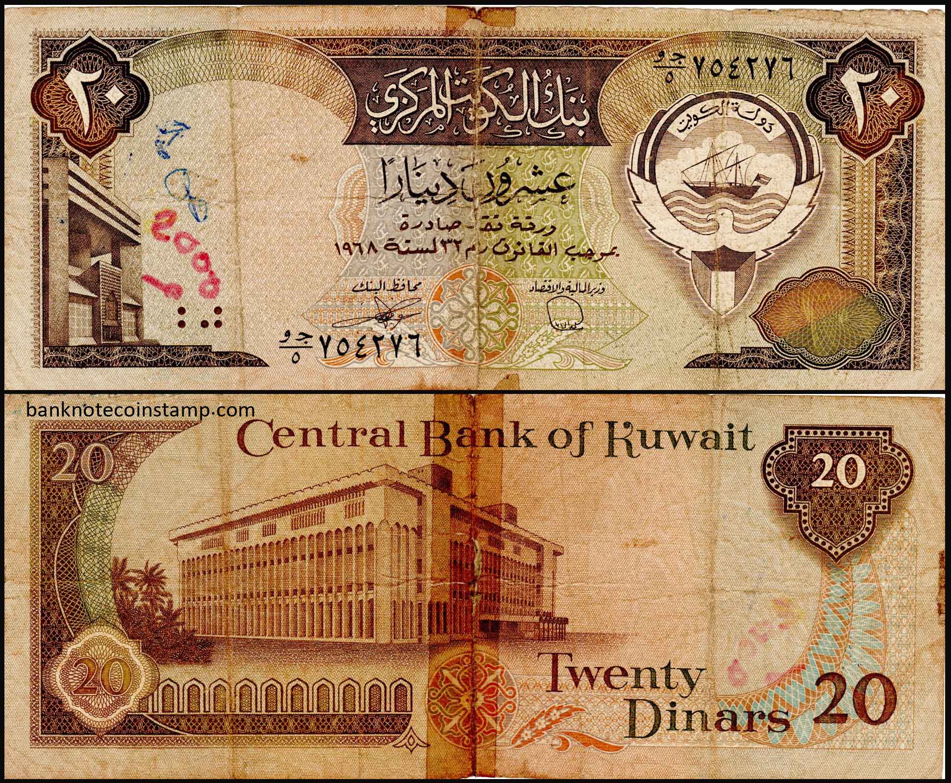 Kuwait 20 Dinars Very Used & Edge Damaged Banknote
