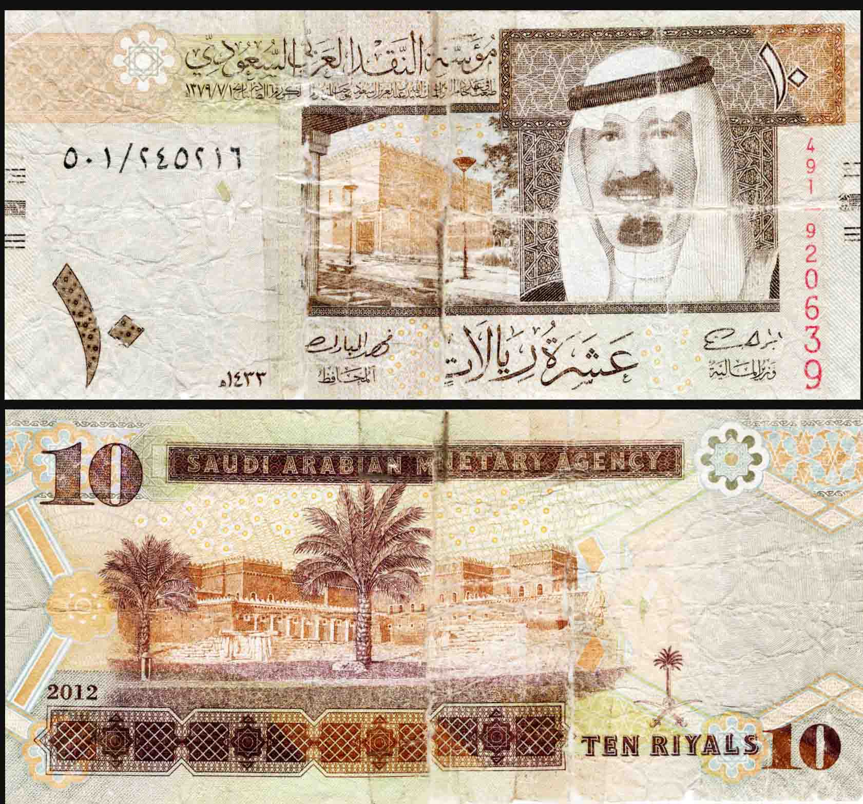 Saudi Arabia 10 Riyals Very Used & Damaged Banknote