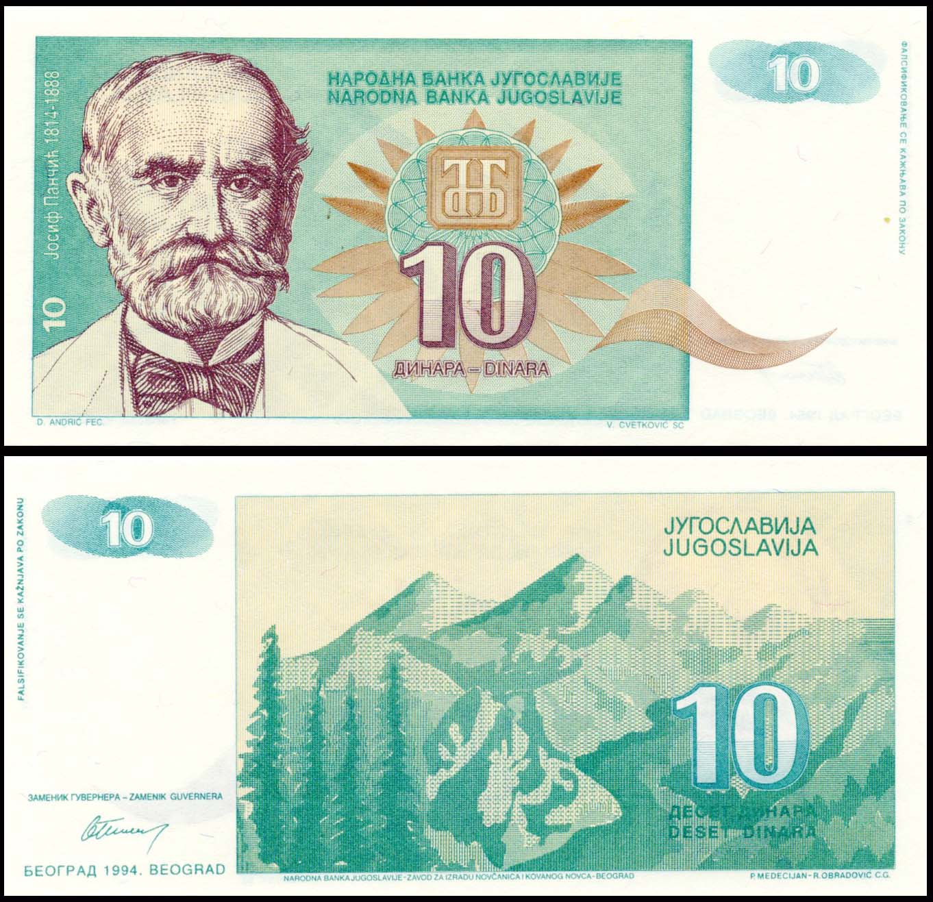 Yugoslavia 10 Dinara UNC Banknote (Josif Pančić)
