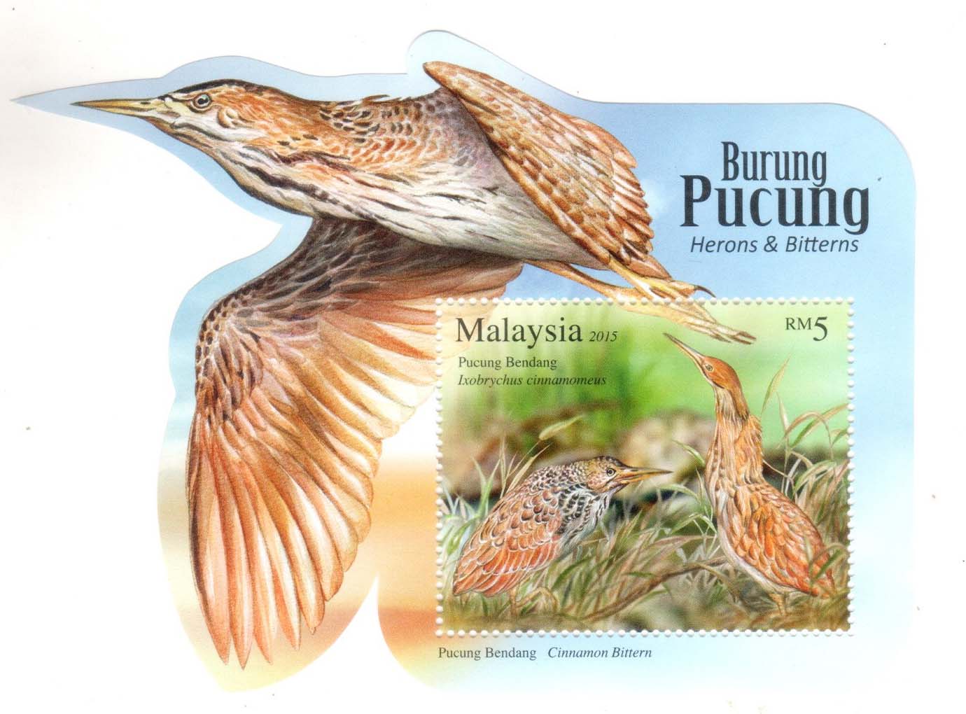 Malaysia Herons & Bitterns Birds odd Shape Miniature Sheet