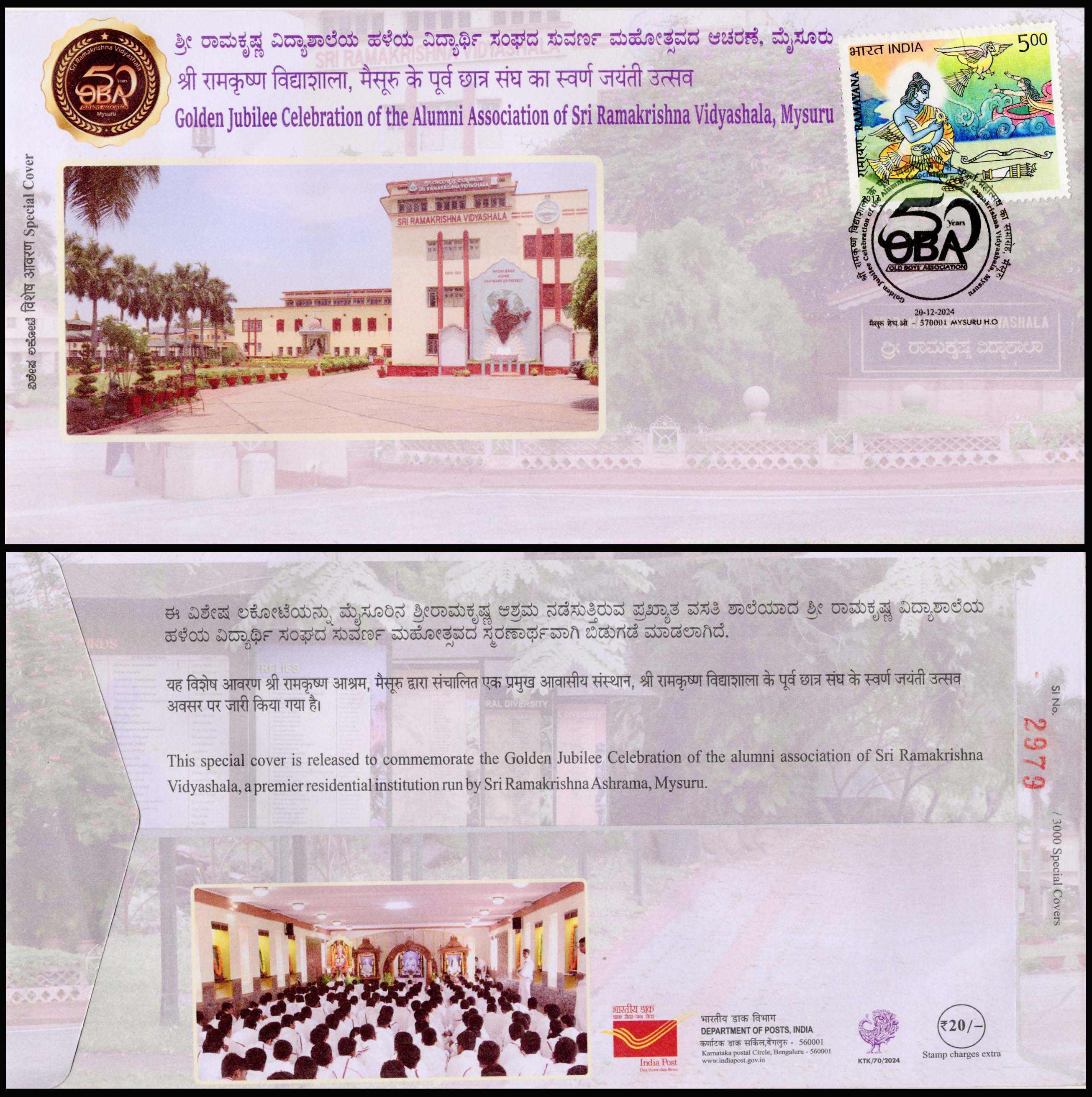 India Golden Jubilee Celebration of the Alumni Association of Sri Ramakrishna Vidyashala Special Cover