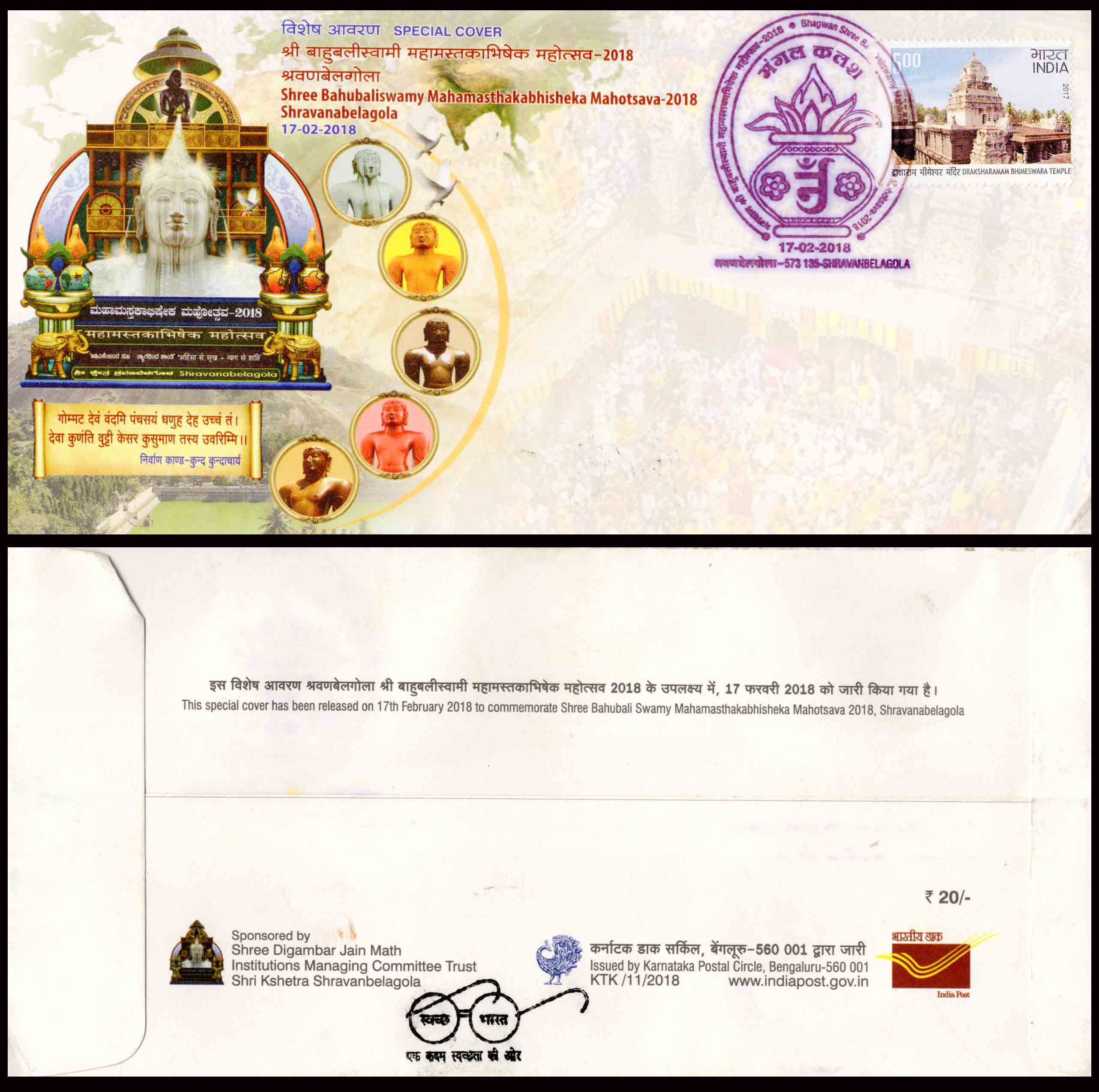 India Shree Bahubaliswamy Mahamasthakabhisheka Mahotsava Special Cover