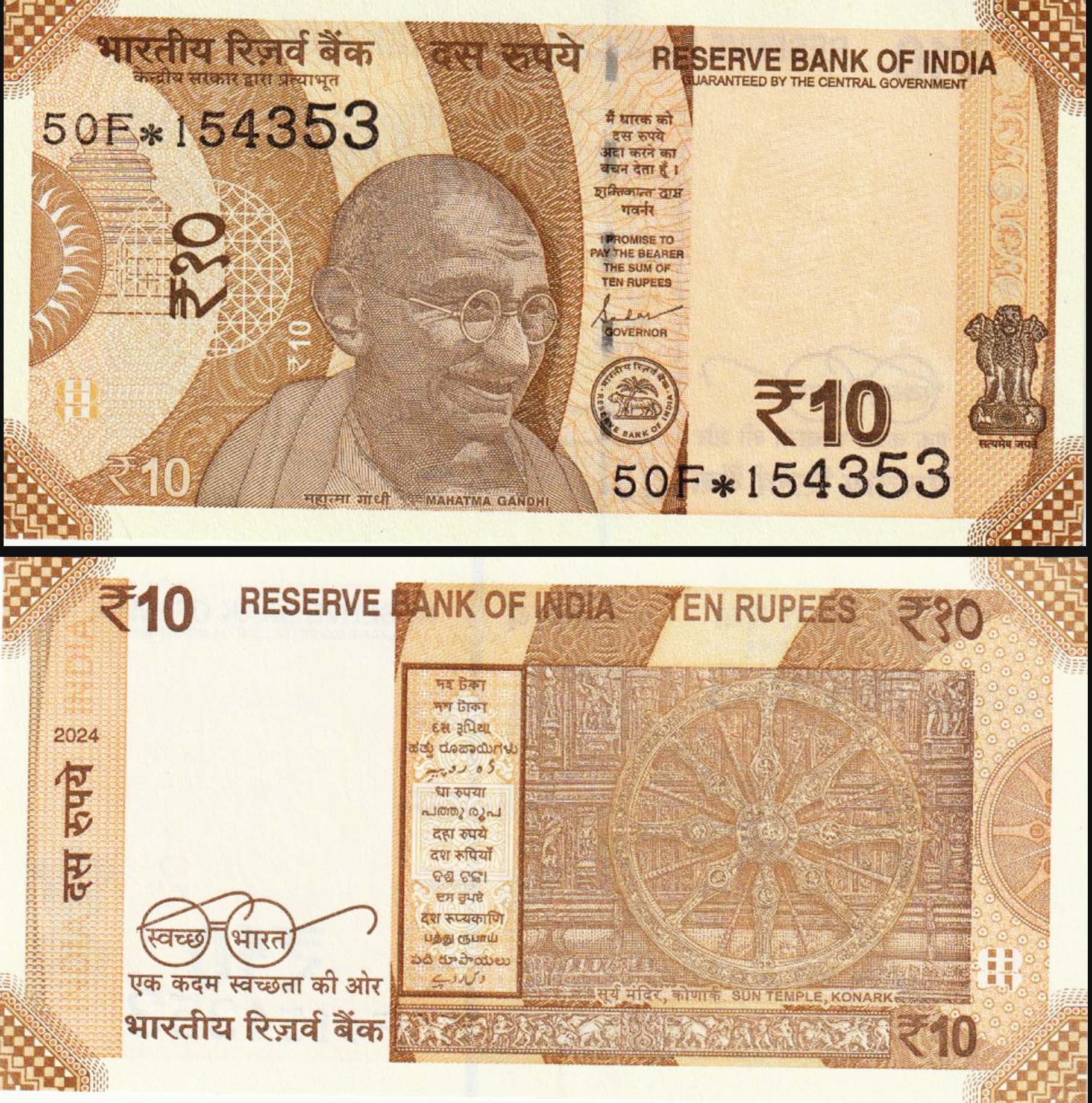 India 10 Rupees 2024 UNC ⭐ New Design Gandhi Banknote – Governor Shaktikanta Das