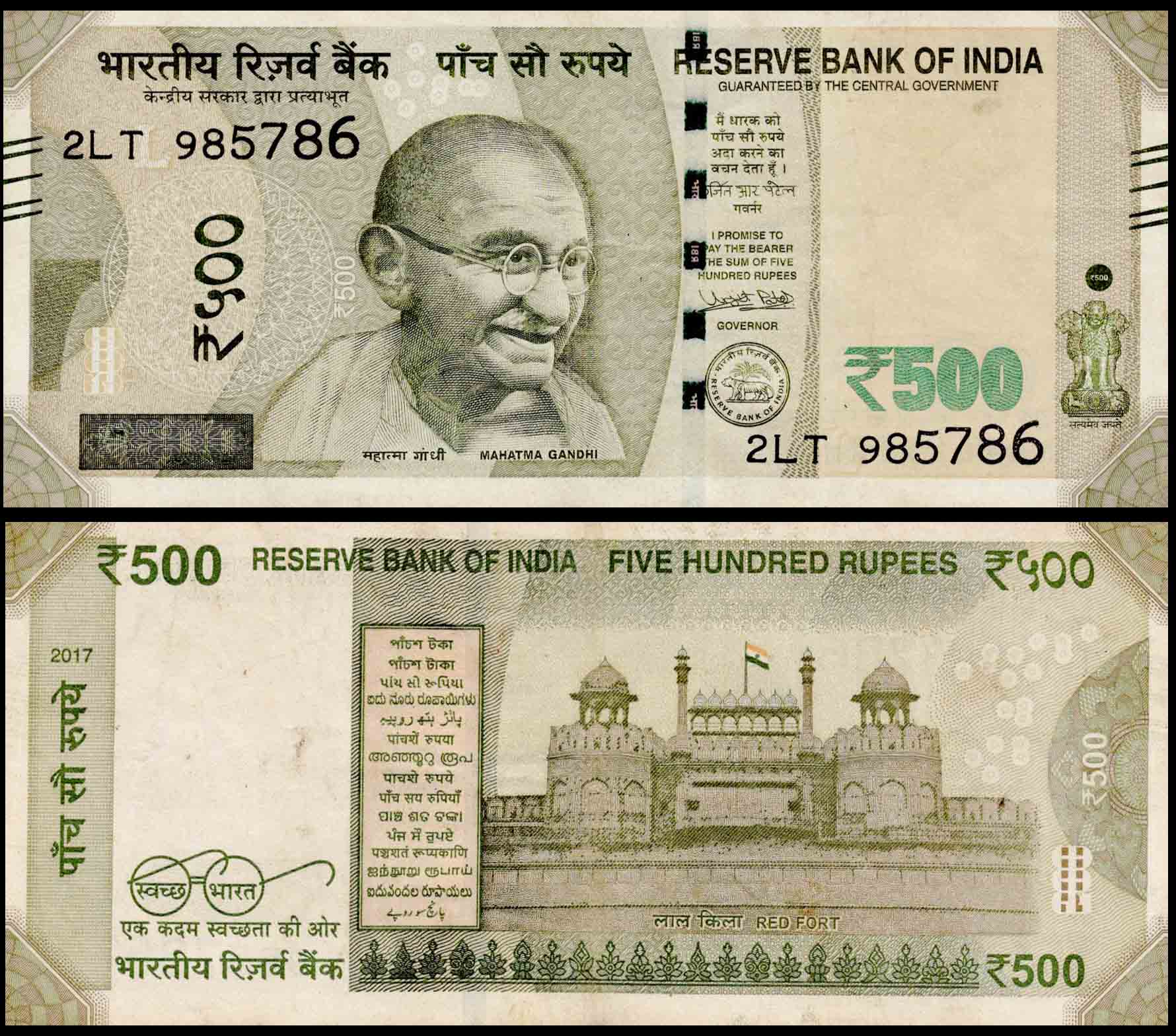 India 500 Rupees Governor Urjit Patel Very Used Banknote ( NO :786)