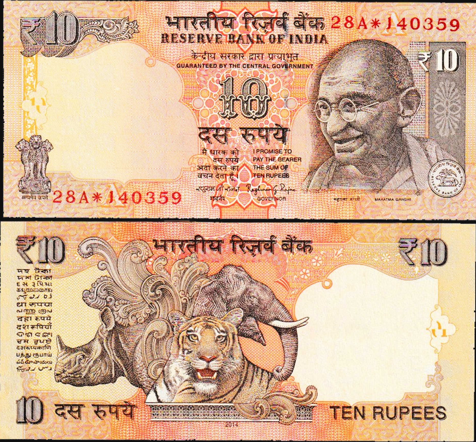 India 10 Rupees Star Banknote Governor Raghuram G. Rajan.