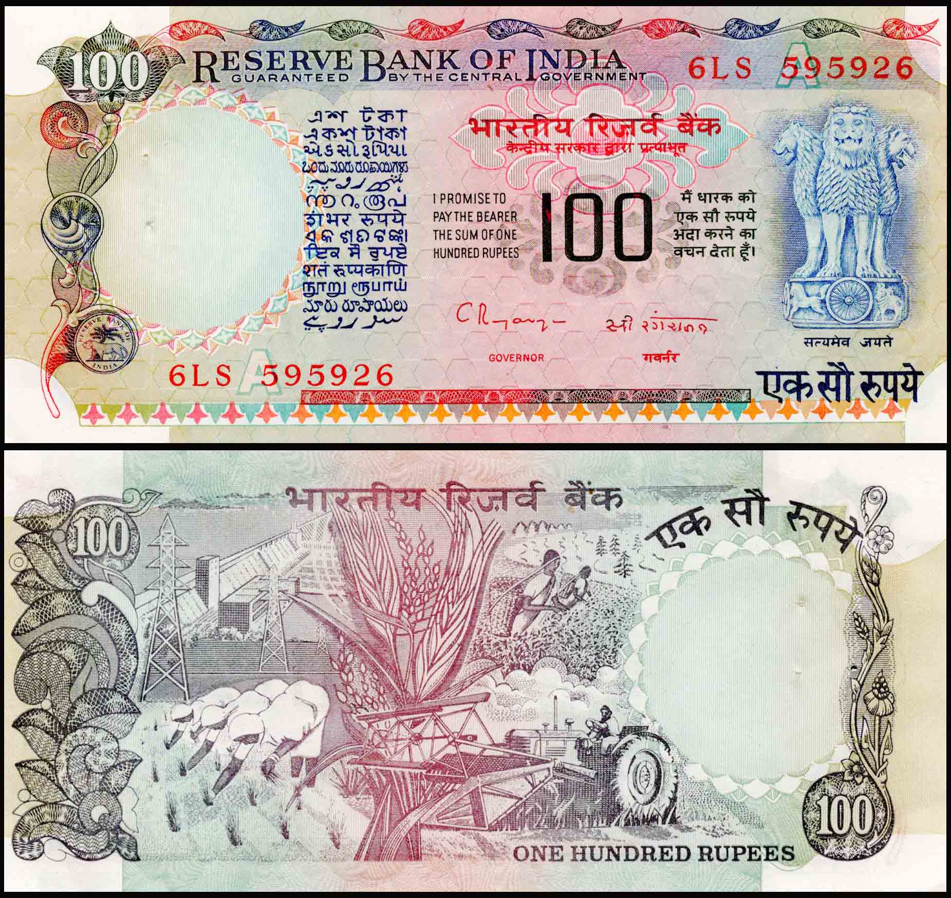 India 100 Rupees Governor C. Rangarajan Used Banknote