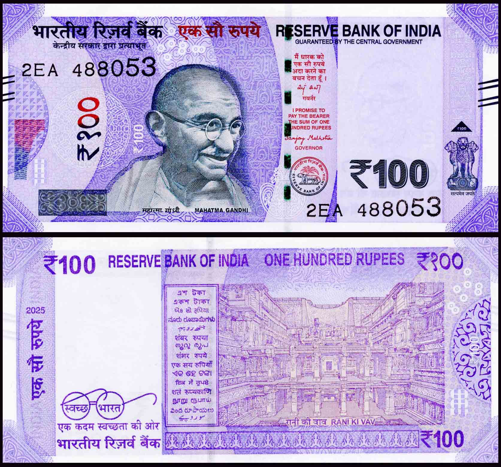 India 100 Rupees Governor Sanjay Malhotra UNC Banknote Year : 2025 M50